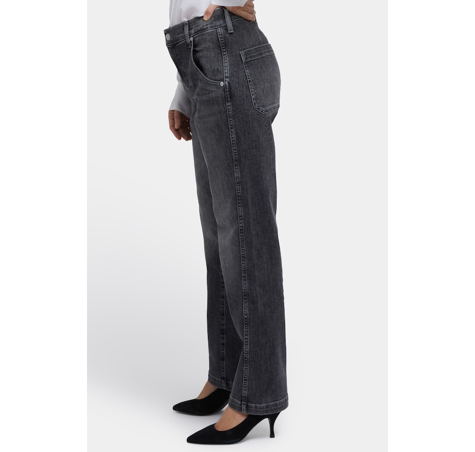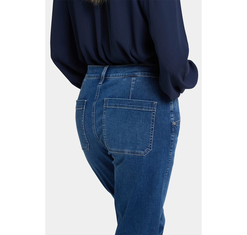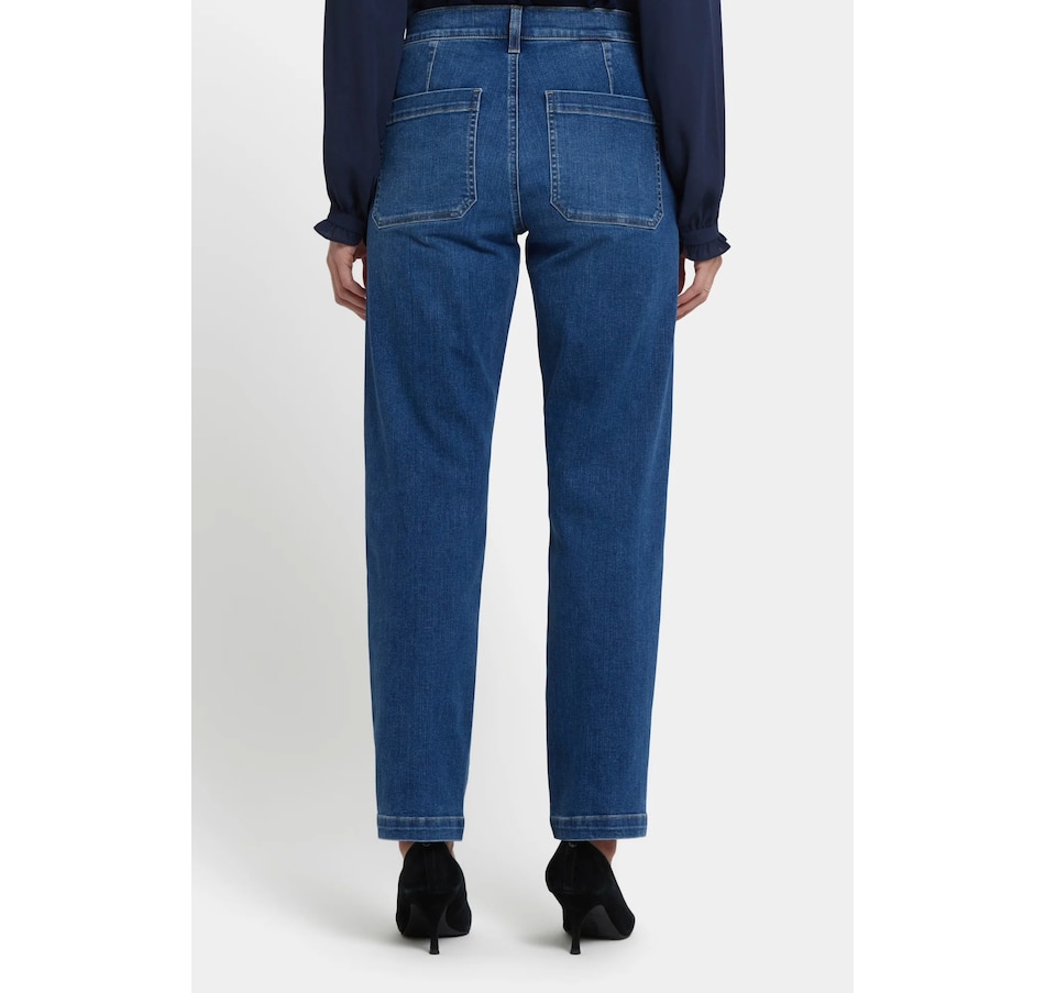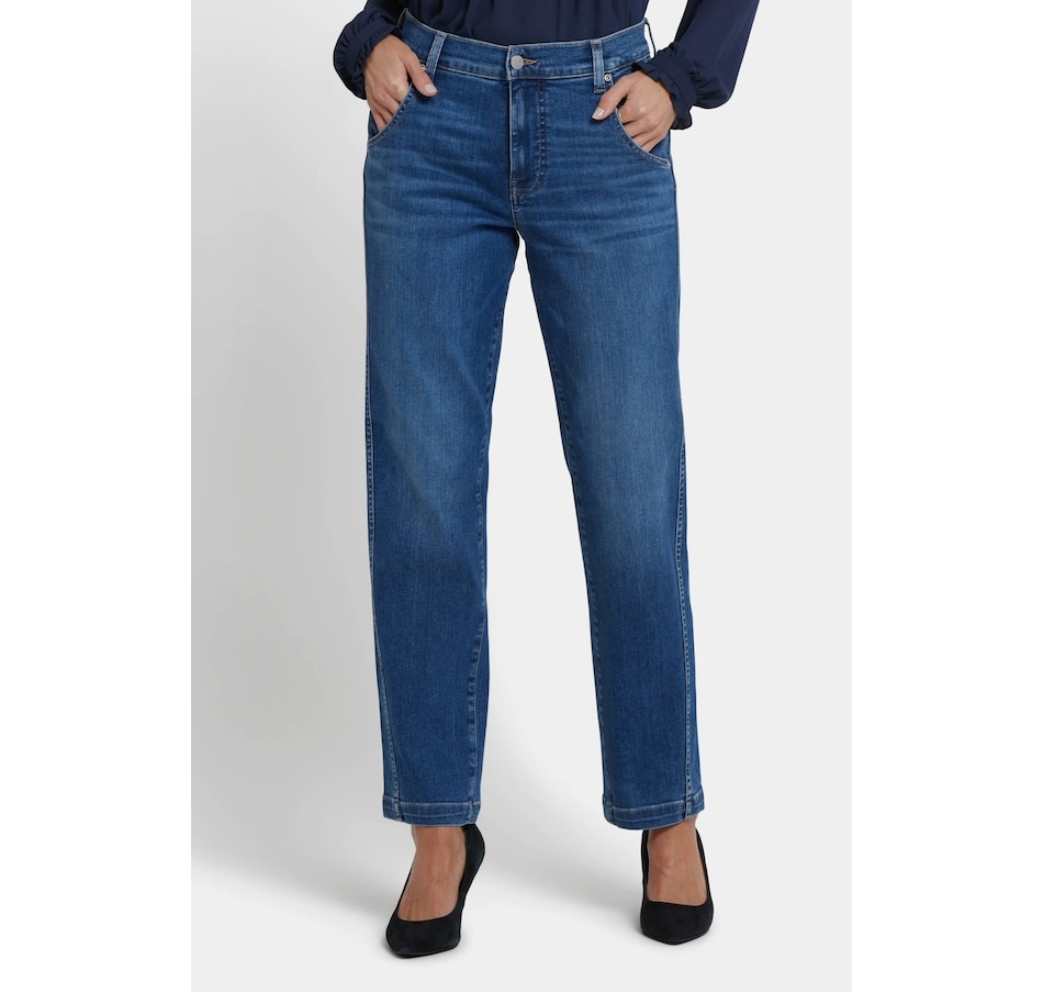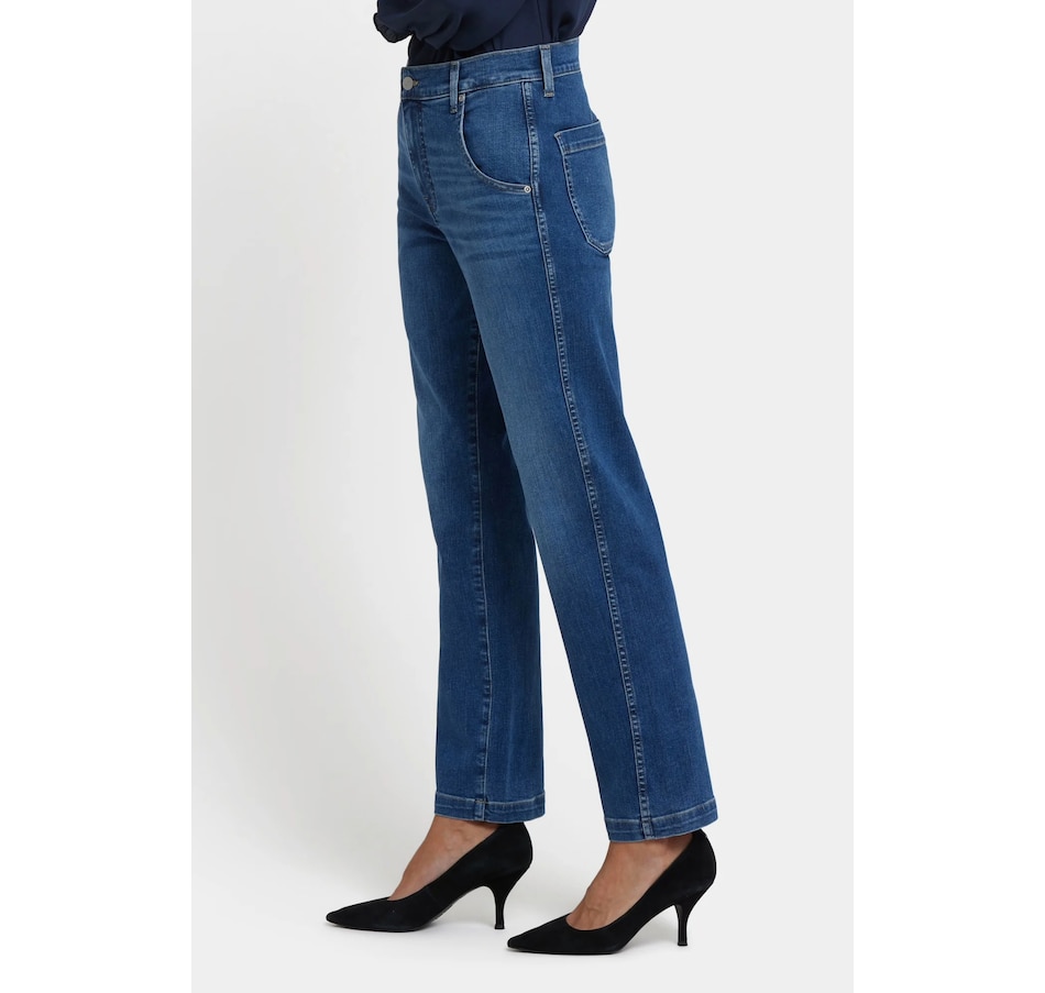 NYDJ's Brooke loose straight jean will make you look as good as you feel wearing it. This vintage-inspired jean features a relaxed straight fit through the legs and a curve-flattering high rise. It finishes with a four-pocket styling, zip fly and button closure. This jean is made with earth-friendly methods that result in reduced consumption of water, chemicals and/or energy.
