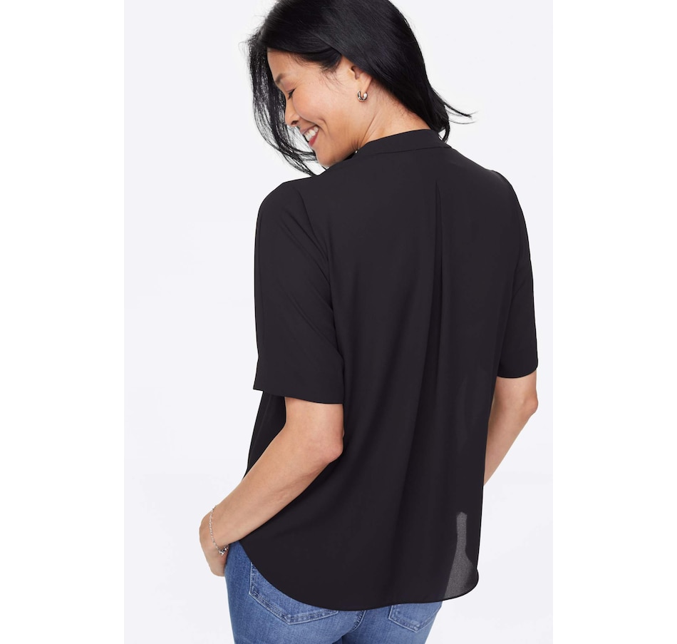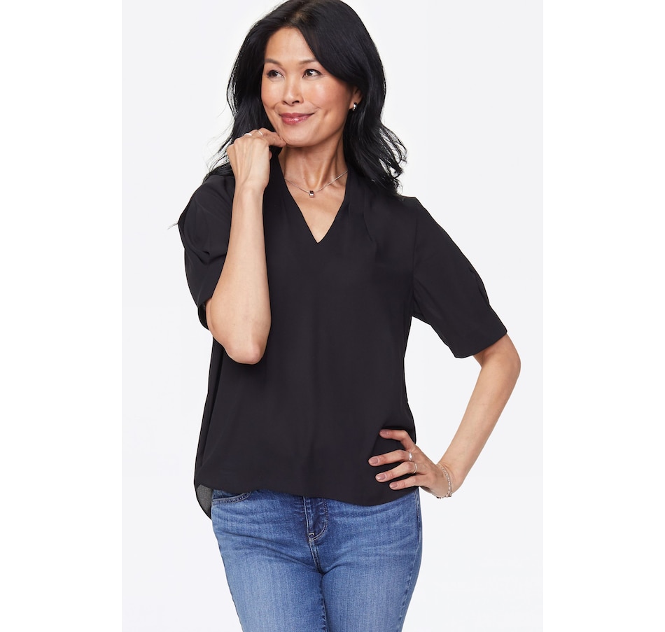The Charming top by NYDJ is the drapey, easy top your closet has been searching for. The oversized fit is the perfect complement to your favorite skinnies and easily transitions from work to cocktails with a pair of heels. This top is made with a sustainable polyester fibre created from 100% post-consumer plastic waste, resulting in less water and energy use and fewer greenhouse gas emissions without changing the look and feel of the fabric.