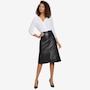 This fabulous skirt form NYDJ is both statement making and curve sculpting. The faux leather a-line skirt keeps your silhouette ultra smooth with its unique compression qualities. Its versatile day-to-night style looks fabulous with a blouse or sweater and boots, adding a little textured edge to your look. It's finished with a back zip closure and a front slit for ease of movement. This skirt is part of Sculpt-Her, NYDJ's most novel collection of compression-contouring silhouettes with an exceptional, cutting-edge fit.