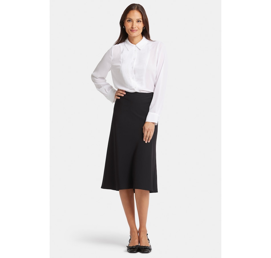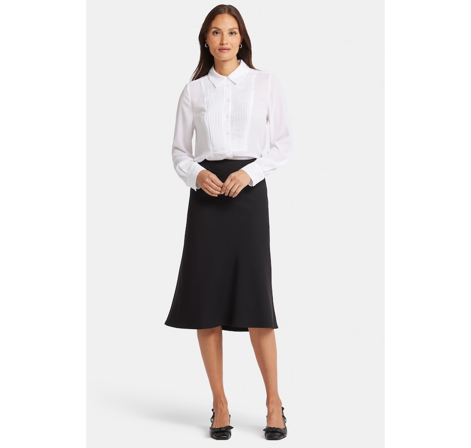 Upgrade your workwear wardrobe with NYDJ's midi skirt. Expertly designed with a fluid hem, this flattering crepe skirt moves with you. Style it with the NYDJ Modern blazer for a sleek office look that pairs well with either heels or sandals.