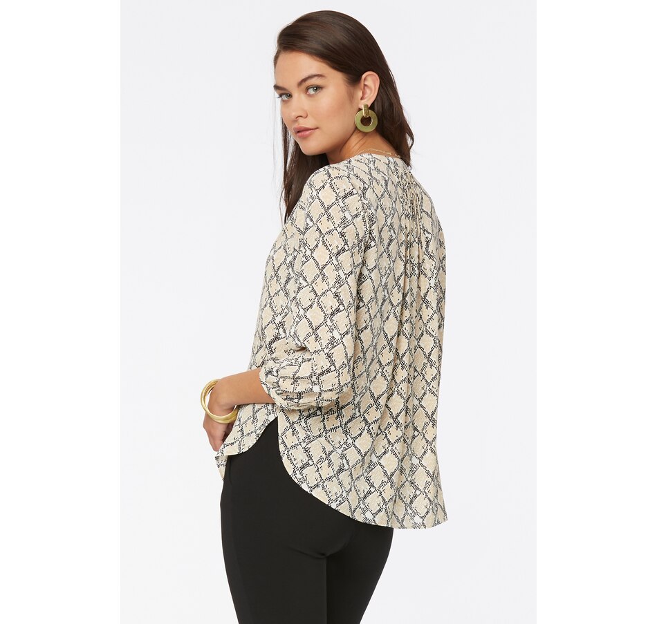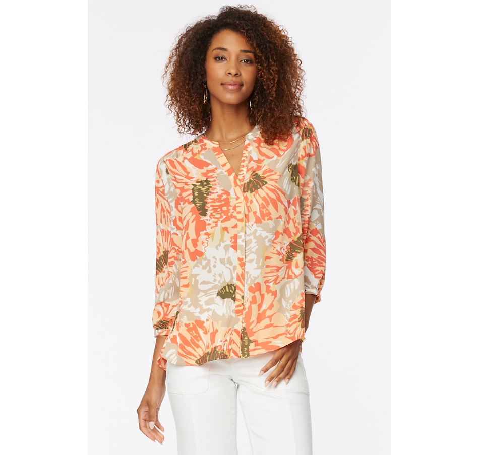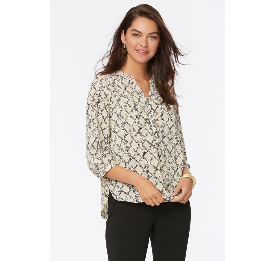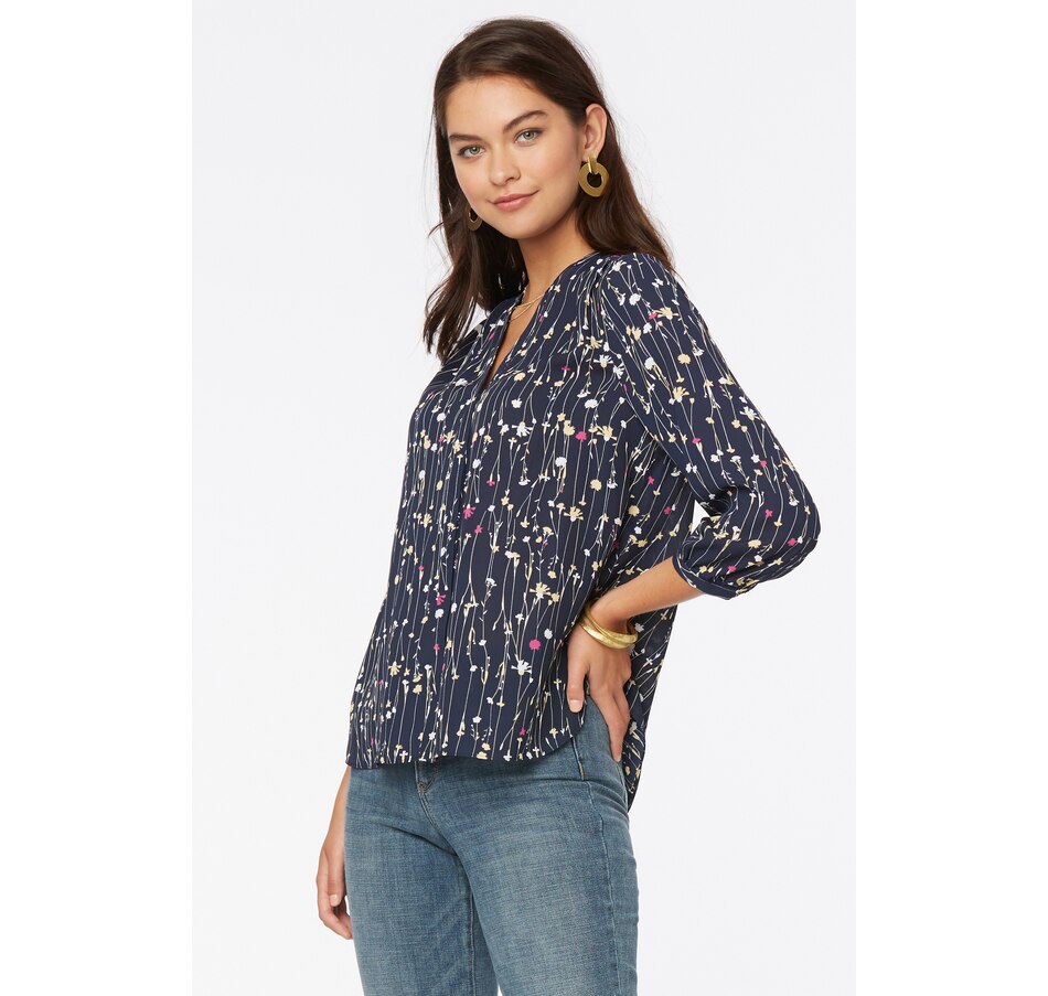 NYDJ's Pintuck Blouse boasts a billowy three-quarter-sleeved silhouette that's perfect when paired with any of our slimming denim styles. Pleating at the back yoke creates a sophisticated yet easy drape.