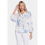 NYDJ's puff sleeve popover top is made from georgette with an impeccable drape. This breezy blouse is a true wardrobe essential with soft, romantic gathers throughout and voluminous sleeves. Featuring a split neckline and a high-low hem, this blouse is made with a sustainable polyester fibre created from 100% post-consumer plastic waste, resulting in less water and energy use, and fewer greenhouse gas emissions without changing the look and feel of the fabric.