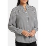 This long sleeve ruffle neck blouse by NYDJ makes any outfit more feminine with a ruffle-trimmed high collar and pintucked shoulders. This pretty top buttons up at the front in a relaxed fit. The fabric is made with a sustainable polyester fibre created from 100% post-consumer plastic waste, resulting in less water and energy use and fewer greenhouse gas emissions without changing the look and feel of the fabric. The buttons are made with 50% post-consumer recycled polyester.