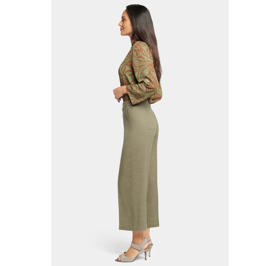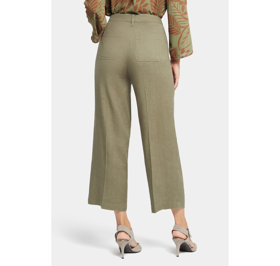 Style, comfort, and flattering design; the wide leg cargo capri pant by NYDJ has it all. A fashion-forward wide leg and cropped length make this pair a dream to wear on warm days. To keep your centre looking sleek, they rise to the natural waist and include Lift Tuck technology, and a proprietary slimming panel with a patented criss-cross design. It features a zip fly with button closure and four-pocket styling.