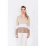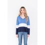• V-neck, long sleeve, lurex contrast stripe at the waist