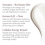 The first anti-fatigue body cream with 4x Magnesium and NAD , lifting, firming, and recharging tired skin from head to toe. Throughout the day, your body constantly fights free radicals and environmental stressors that can leave your skin looking depleted. This luxurious yet lightweight, power-packed formula gives your skin that "just-had-a-coffee" kind of pick-me-up, targeting multiple signs of aging while you tackle the day.