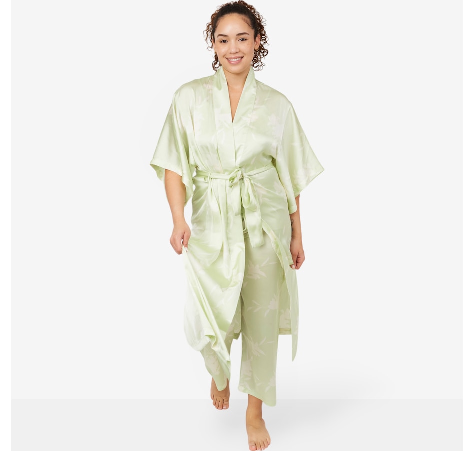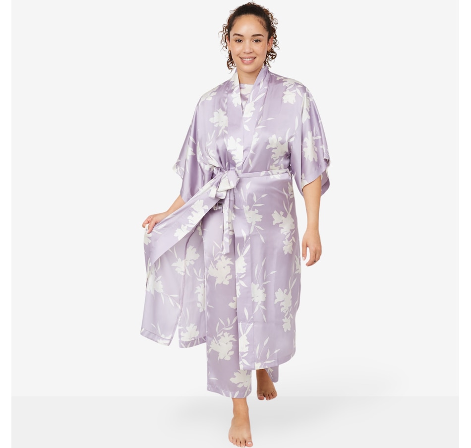 This beautiful lily Icon robe from Natori Edit allows you to feel refreshed in fresh florals and is printed on flowy satin that gives a wonderful ease of movement.