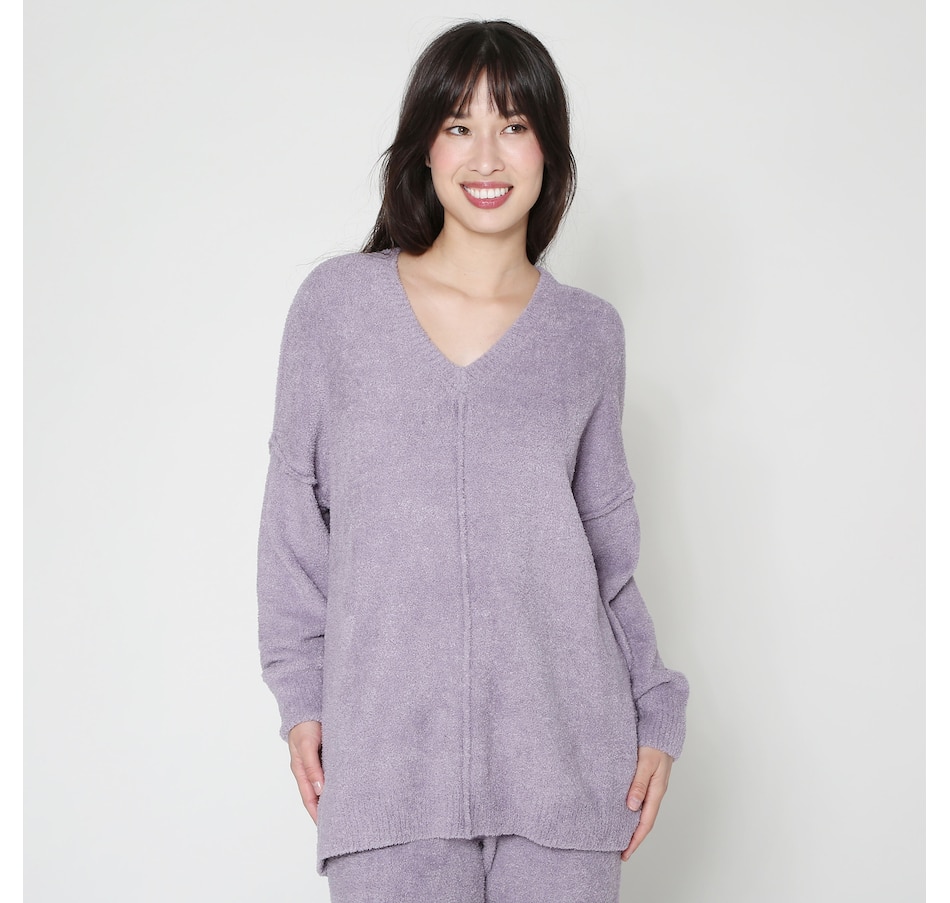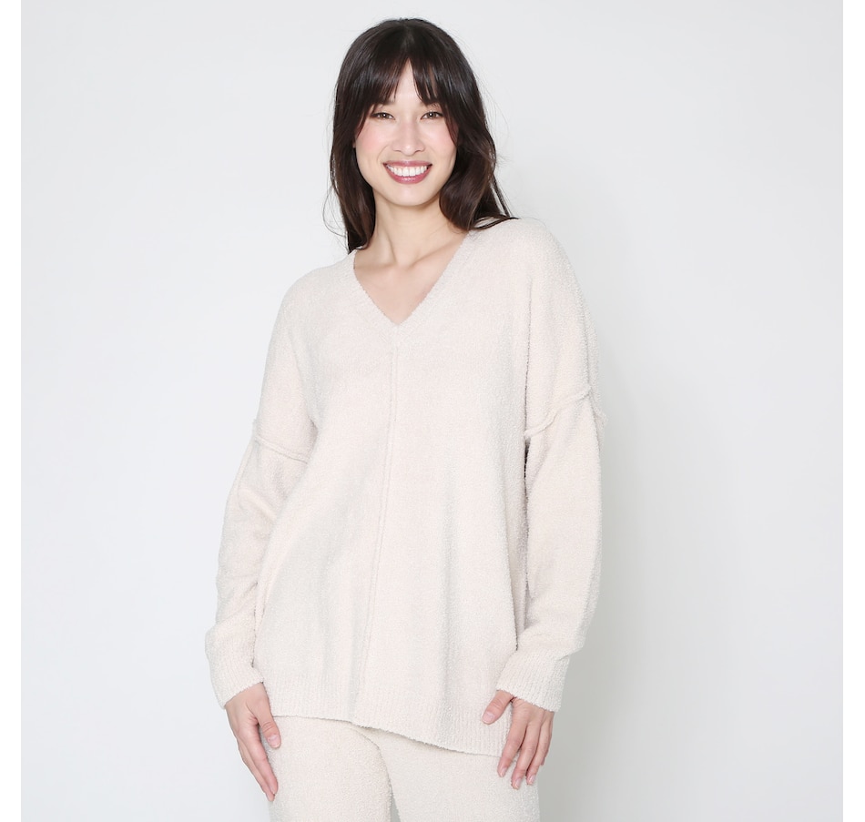 The Luna from Natori Edit is a beautiful sweater knit top with long comfy sleeves and a classic V-neckline.