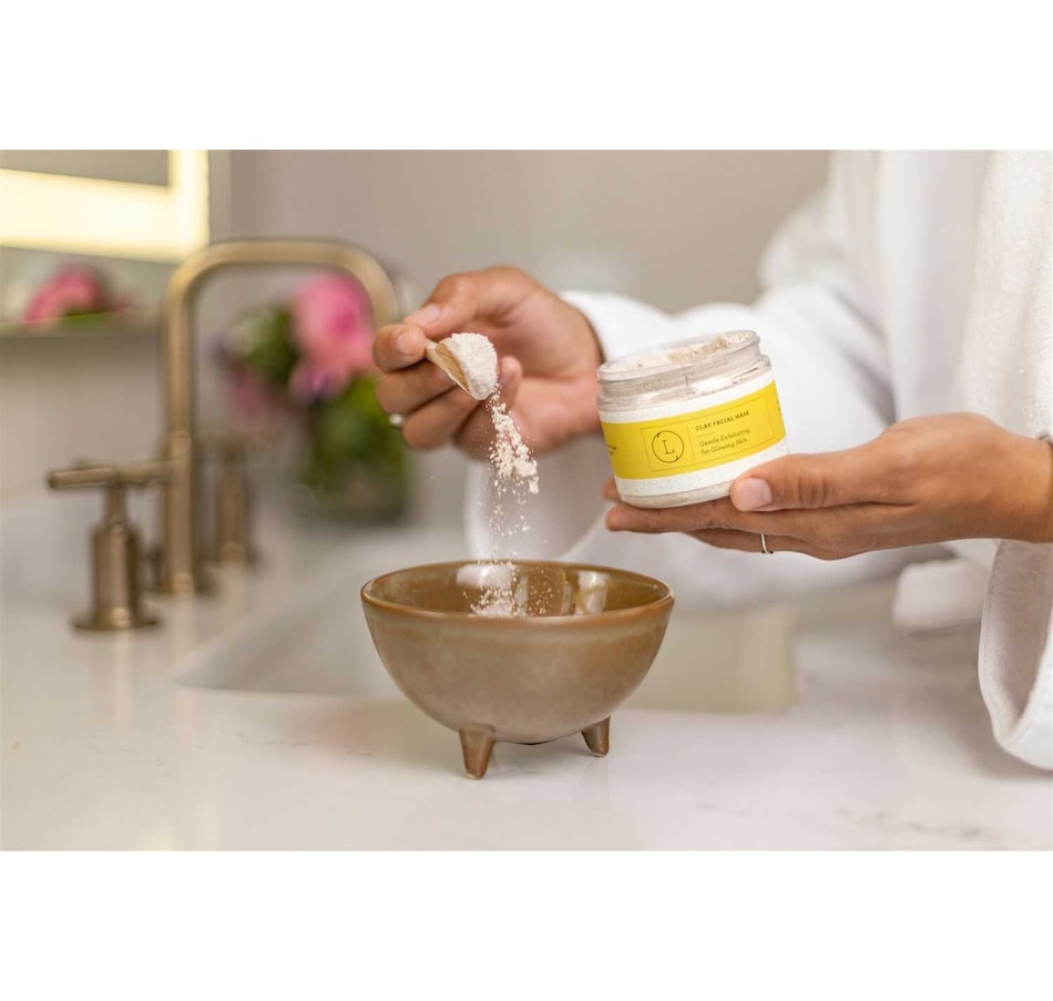 Our clay facial mask is a gentle exfoliator and will leave you with glowing skin. clay mask thoroughly cleanses the face, absorbs all toxins, reduces pimples, and makes your face stay clean and shiny.The mask comes as a powder consisting of Kaolin clay, Bentonite clay, Oat flour, Almond flour, Cocoa powder - all have soothing, antiseptic, and anti-aging properties.The mask is suitable for all skin types.Natural Clay Facial Mask Clay Facial Mask - (1 oz) Cotton bagHow to use:1. Mix 1 TBS mask base in your palm with 1 TBS water or oil2. Apply on clean damp skin3. Relax & leave on for 15 minutes or until dry4. Massage your skin with a small amount of water5. Rinse with warm water*** Enjoy feeling the difference!Natural clay Ingredients:Kaolin clay,Bentonite clay,Oat flour,Almond flour,Cocoa powder Gift message: During check out, on the cart page, enter your personal message to the recipient.Shipping:-Please choose between free shipping (5-7 business days) or expedited shipping (2-4 business days) during check out.- Orders placed after 5 PM PST will be shipped the following business day.Ship it directly to the recipients: During checkout change to the recipient's shipping address.At we believe that you deserve the best!Working hard all week and taking care of your family and loved ones? It's now time that someone else should take care of you!We, therefore, created All Natural products with you in mind:* High-quality all-natural materials.* We use only natural colorant made from spices and herbs* We use only high-quality essential oils for scentOur goal at is to make you feel good and look your best!