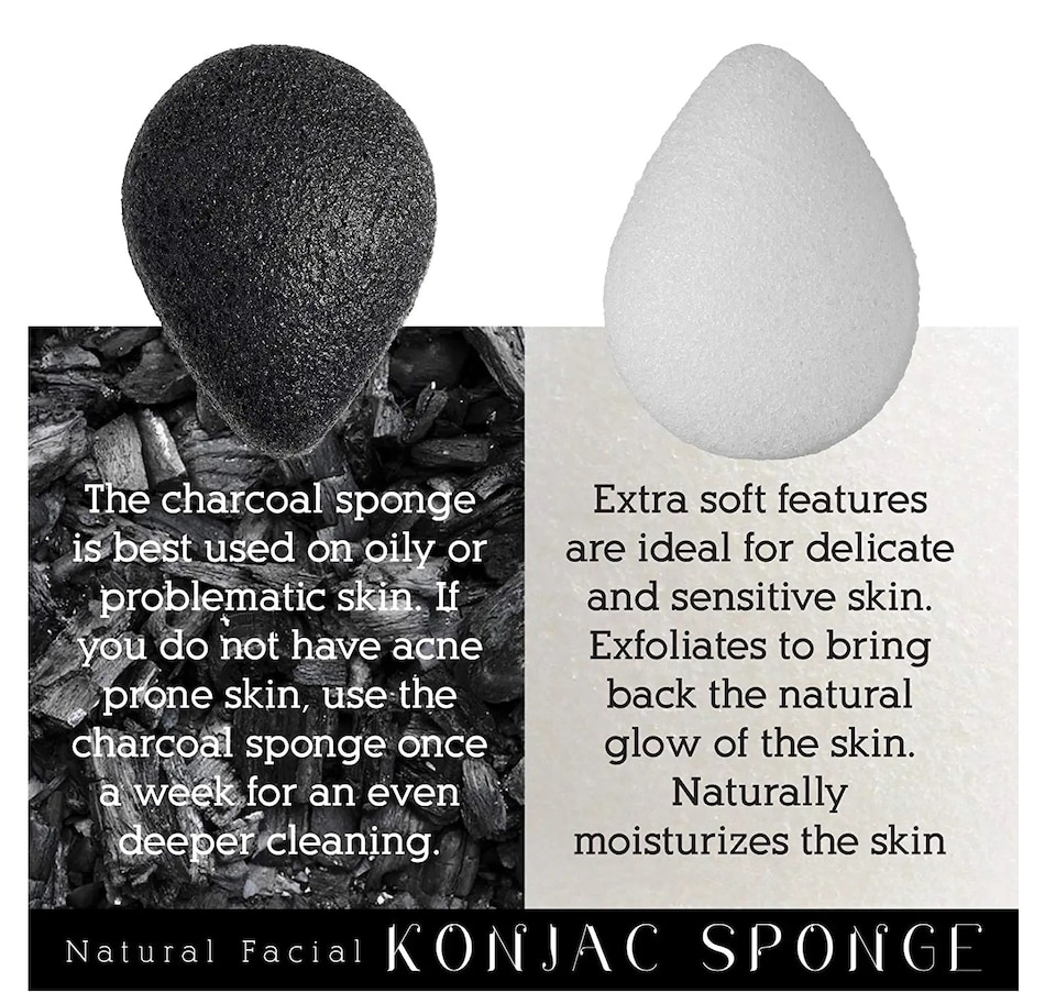 Konjac sponge is made of natural fiber & is gentle, ideal for even newborns. Using it daily enhances skin's natural glow & softness. White sponge is good for all skin types; charcoal sponge is best for oily or problematic skin. If not acne-prone, use charcoal once weekly for deeper cleansing.Features:Exfoliates to bring back the natural glow of skin, effectively balances the PH of the skin, Extra Soft features for sensitive skin, Naturally moisturizes the skin. Ideal for people with hypersensitive skinKonjac Root: Natural and proven over 100's of years to detoxify and restore vitality with routine use. Excellent at eliminating body impurities and refining facial complexion.How to Use: Soak the sponge in water until it's fully soft. Massage gently in circular motion on your face. After use, rinse the sponge & press it gently until it driesTip: Every 1-2 weeks you can sanitize your Konjac sponge by boiling it for 1 minute.Model Number: COG420