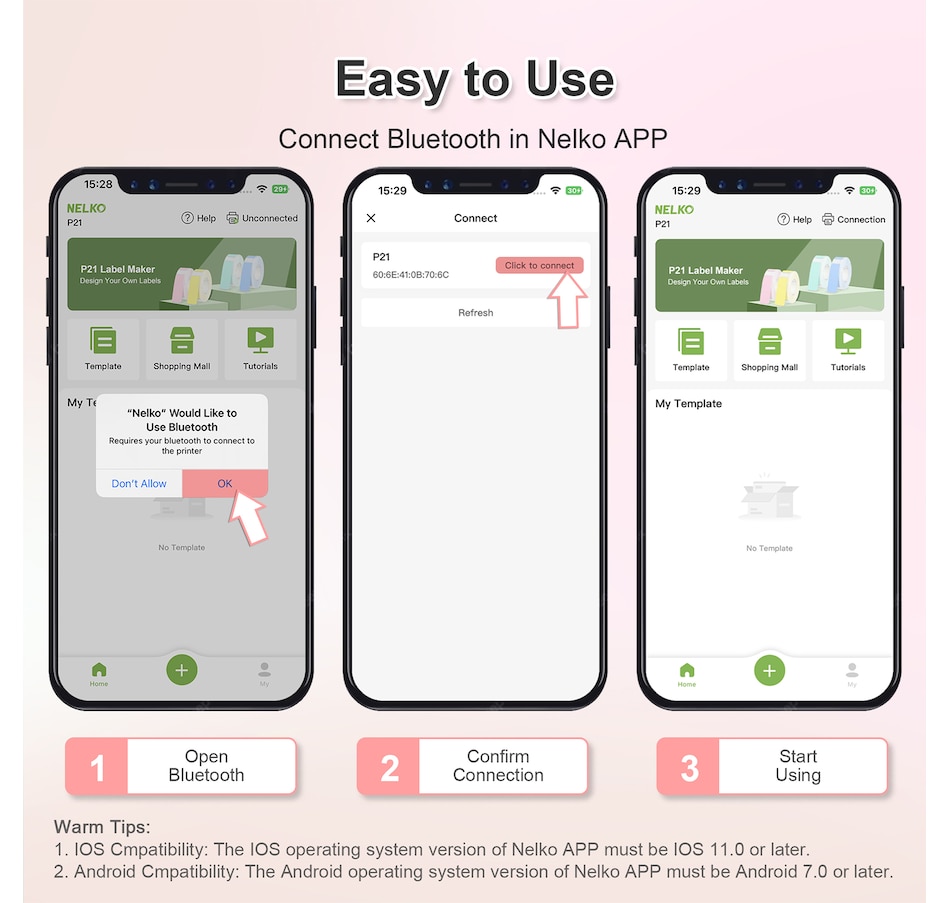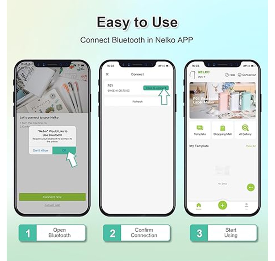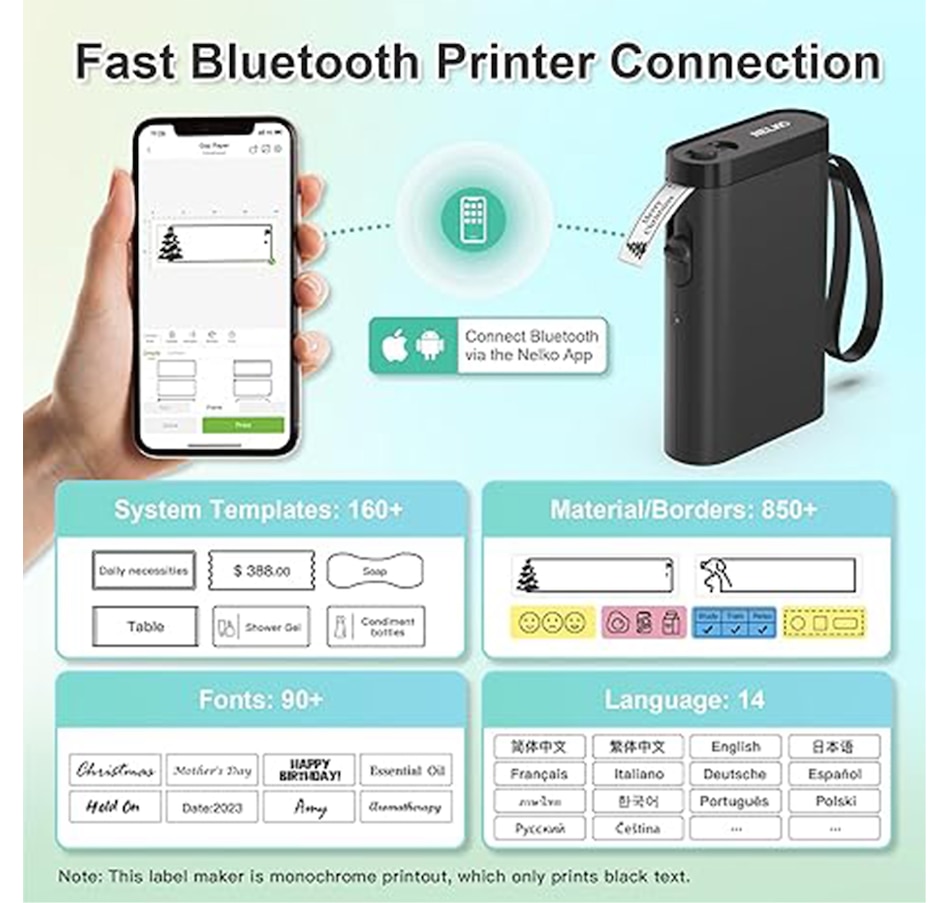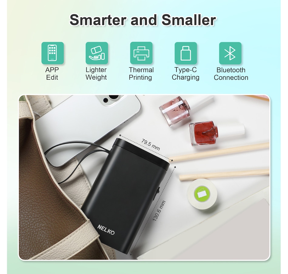 The Nelko P21 Portable Bluetooth Label Printer is easy to use, supports iOS and Android via Bluetooth connection, and offers high-quality printing with sharp, ink-free prints using Nelko thermal paper and direct thermal technology. It connects to your phone in seconds for quick, easy printing anywhere, and it also has a compact, lightweight and portable design.