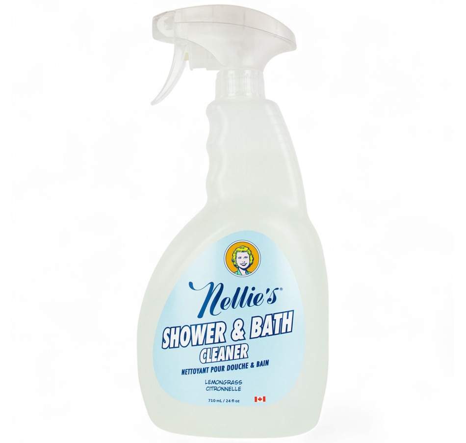 This shower and bath cleaner from Nellie's is biodegradable and contains no harsh chemicals, phosphates or strong perfumes. It does, however, leave a refreshing, natural lemongrass scent!