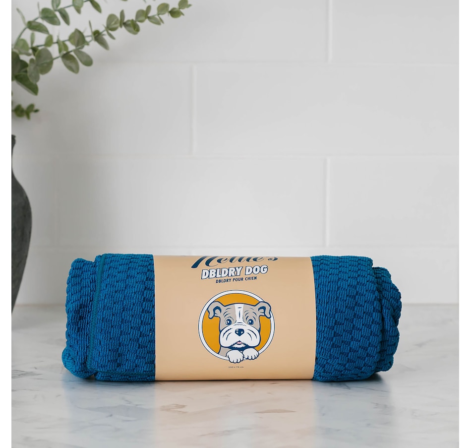 This extra-large, beach-sized towel from Nellie's can dry your dog quickly and effortlessly, and can also provide comfort and warmth. With a unique weave pattern, the DBL DRY Dog Towel is designed to absorb seven times its weight in water. It shortens drying time, captures every drop and requires no wringing out.