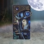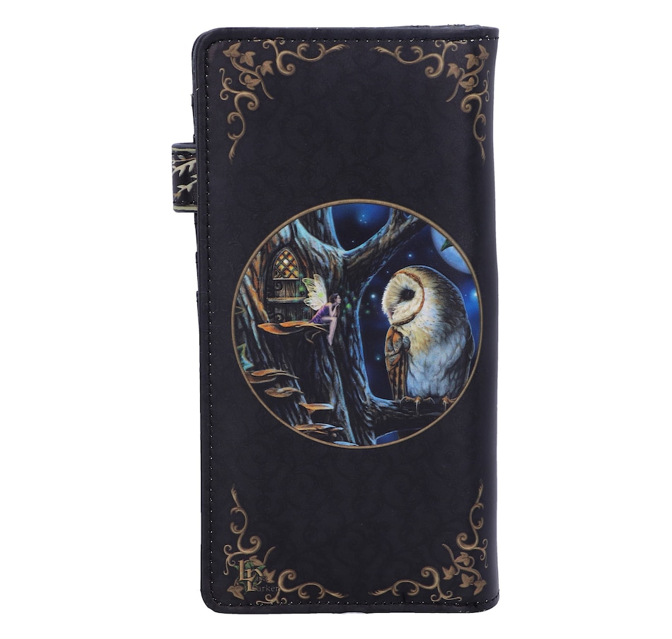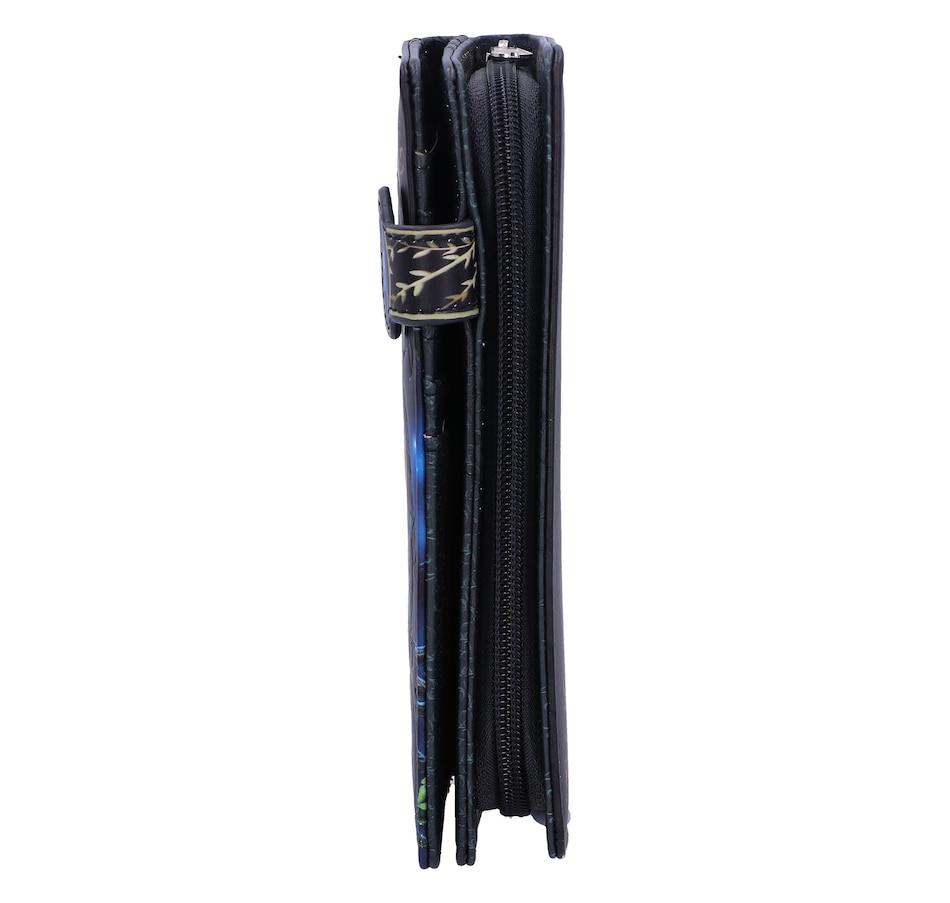 From the imagination of internationally recognized fantasy artist Lisa Parker, this stylish and practical Purse was created through the alternative brand Nemesis Now. In front of a Gothic arched window, with the moon shining in, a black cat stands on its hind legs. Surrounded by potion bottles, the front paws hover over a glowing crystal orb. The orange eyes look curiously at the sparks of magic floating up as it weaves enchantments. This portable purse is large enough to keep your money and cards secure, but small enough for any pocket or handbag, making it perfect for the witches' apprentice on the go.