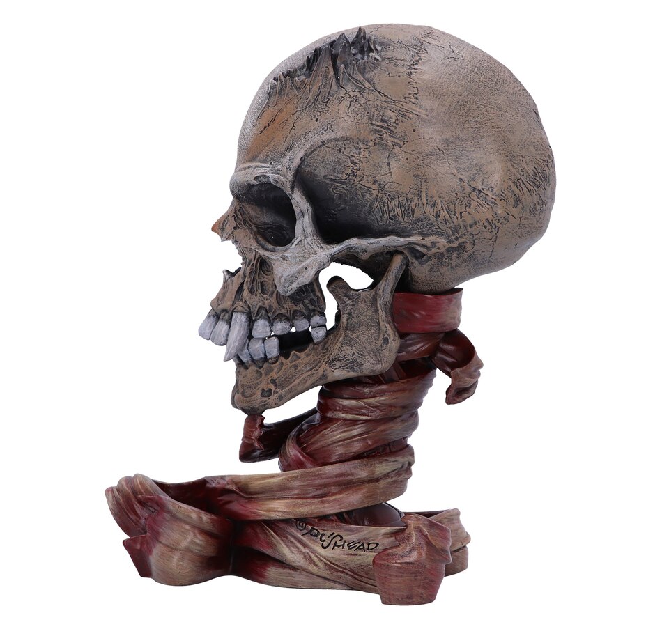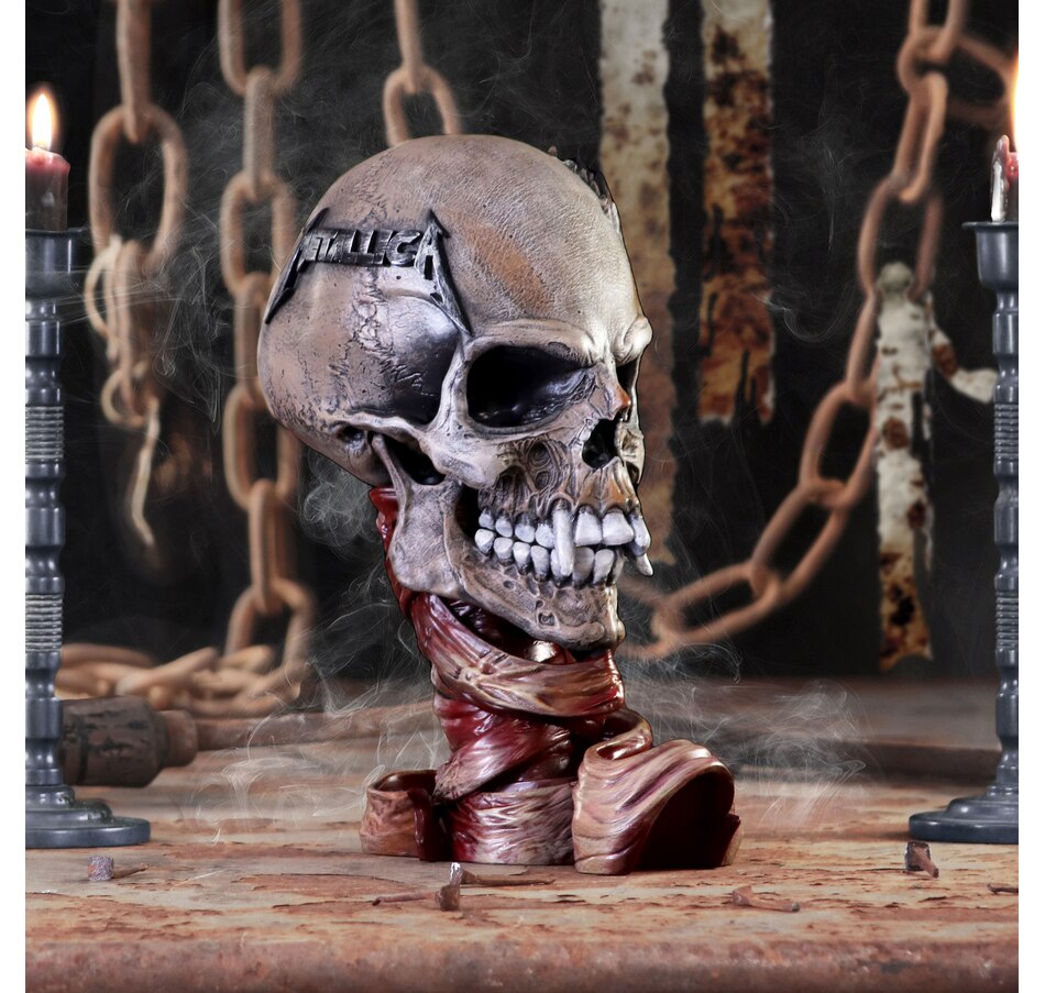 Show your love for thrash metal legends Metallica with this exquisitely designed skull, exclusively made by Nemesis Now. The inspiration for this incredibly detailed piece comes from the Sad but True album, drawn up by the band’s regular designer Pushead. At the side of this fanged skull the famous Metallica logo sits proudly. Cast in the finest resin before being expertly hand-painted, this piece is a perfect way to pay homage to one of the most influential heavy metal bands of all time!