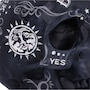 Spirit boards have long been one of the most powerful occult tools around. Encompassing the black cranium is Nemesis Now's own spirit board design, decorated with white baroque detailing on the handle base and rim. In the centre, the alphabet is marked out in an arc. The design also includes numbers 0 to 9 and the words YES and NO, as well as a warning to use with caution. Cast in the finest resin before being painstakingly hand-painted, this skull will make the perfect tabletop accompaniment to any séance or Hallowe'en theme.