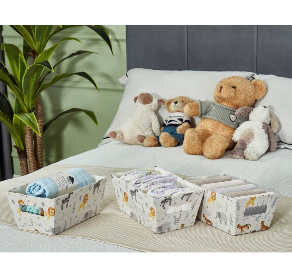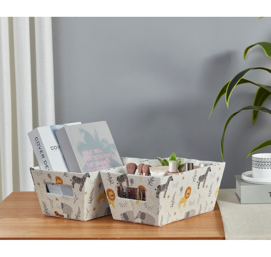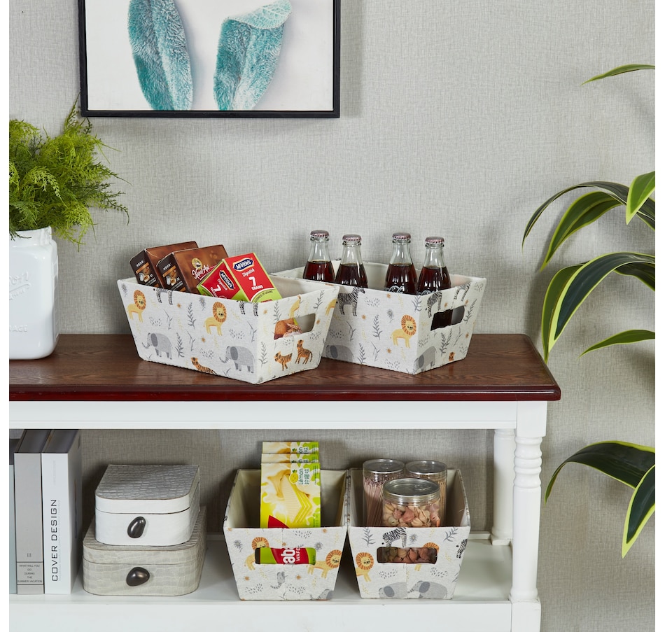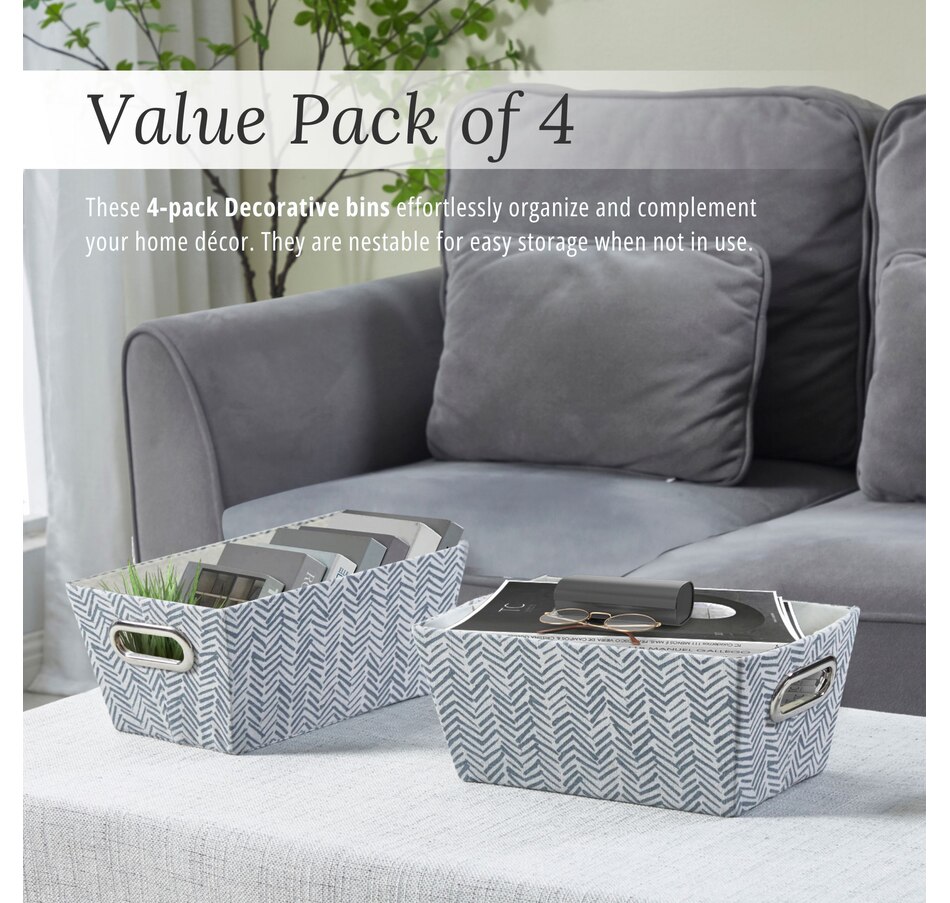 Nestable Storage Bin W/ Cut-out Handles Patterned Small Storage Baskets
