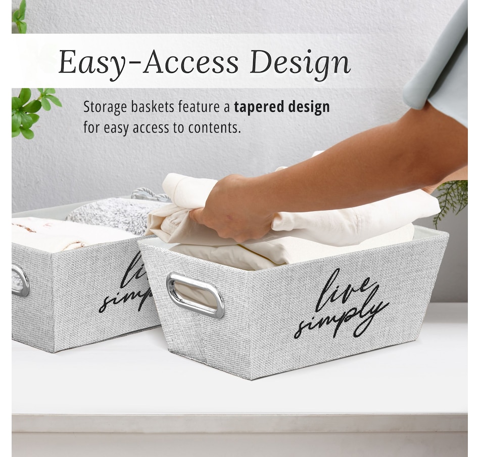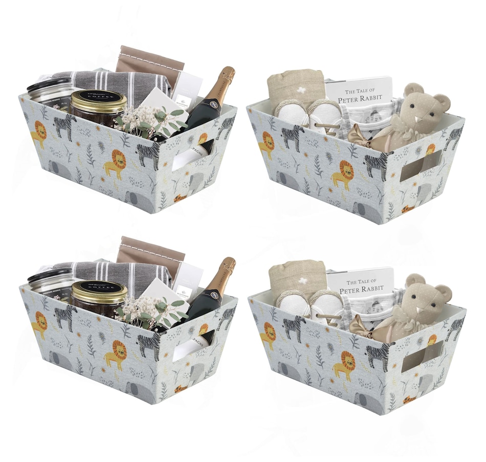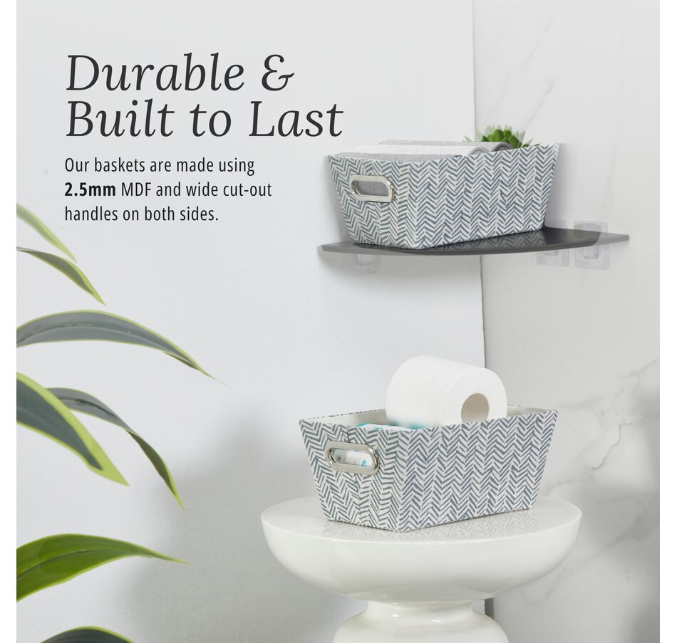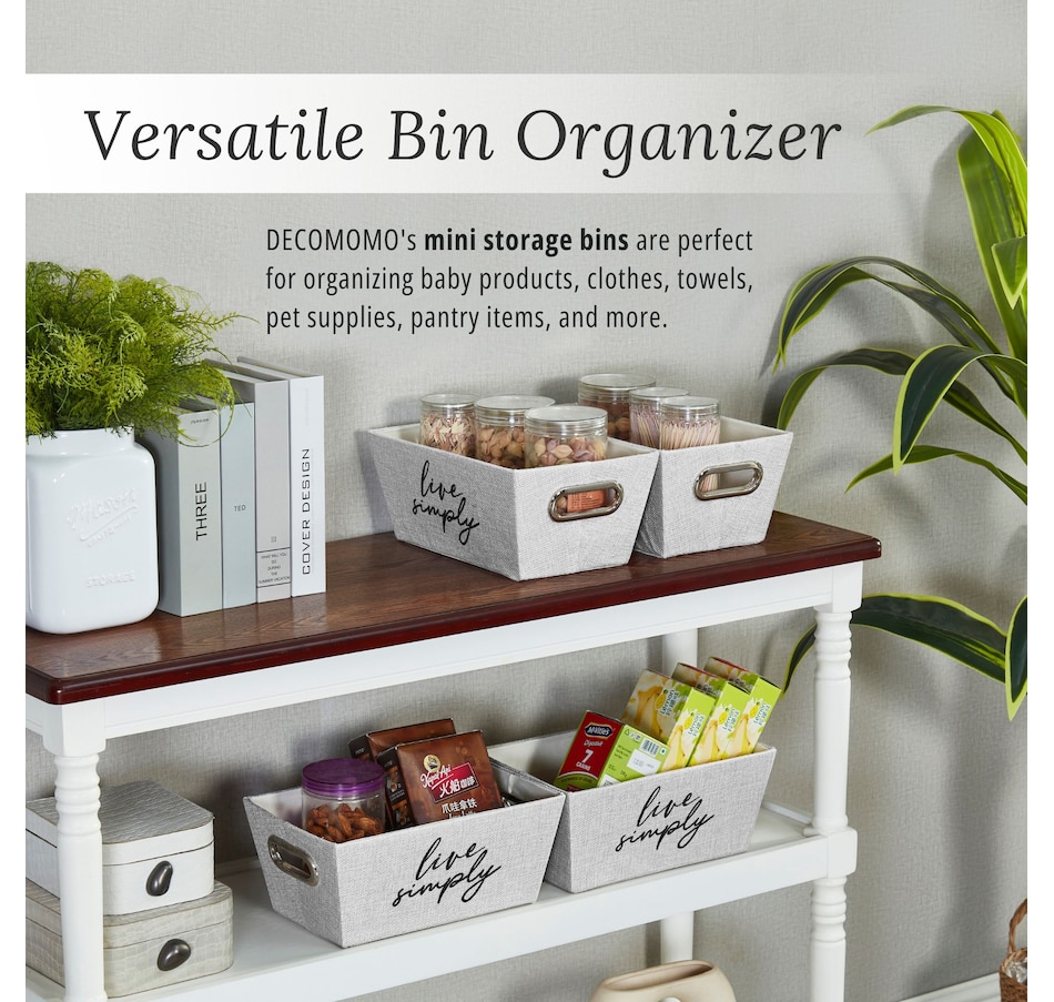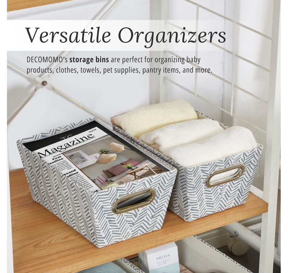 • Value Pack of 4: DECOMOMO storage baskets comes in a set of 4 each measuring 11” (L) x 7” (W) x 5” (H) (27.9cm(L) x 17.7cm(W) x 12.7cm(H)). These gift baskets are easy to clean, simply dust them away with dry cloth or spot clean with light soapy water.