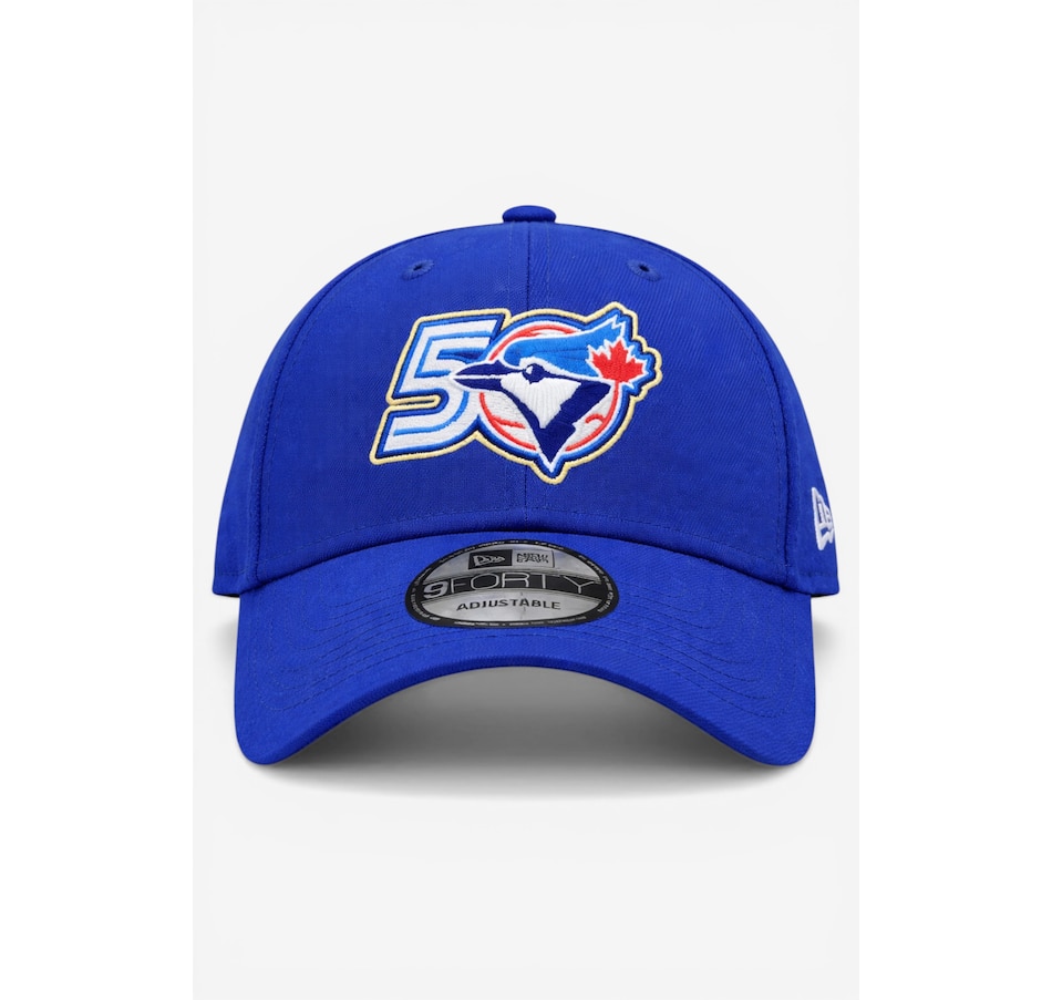 Show your loyalty to the Toronto Blue Jays with this 50th Anniversary 9FORTY Cap from New Era. This is structured adjustable cap boasts a raised embroidery logo on the front and an adjustable velcro closure on the back with a team band stitched on top.