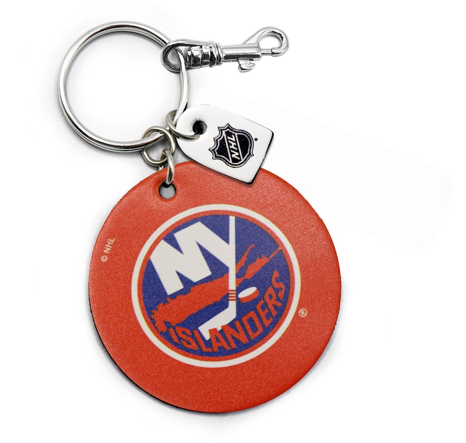 Show your support for your favourite NHL team -even when you're on the go- with this stylish leather round keychain. It is made in Canada, and of 100% genuine bovine leather. This is an officially printed licensed NHL product.