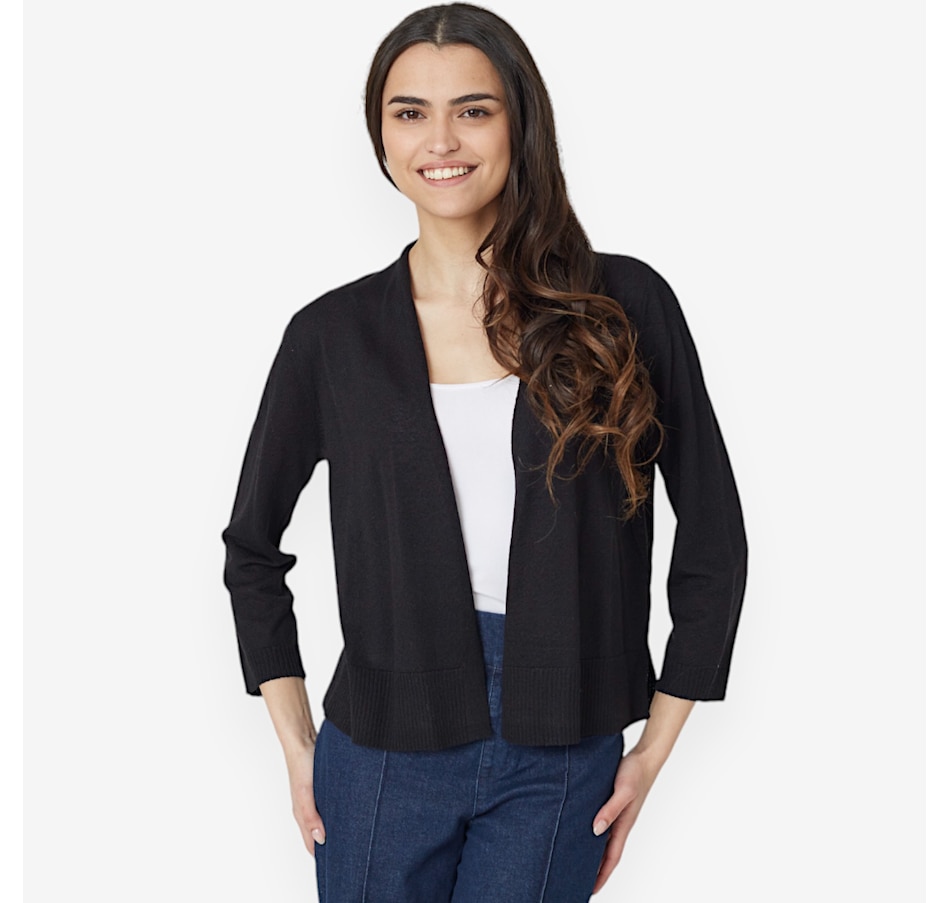 • Relaxed fit, 3/4 sleeve, open front, pockets