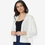 Available in a trio of fabulous colours, you'll centre every look in defined style wearing this 3/4 sleeve sweater knit bolero from Nina Leonard.