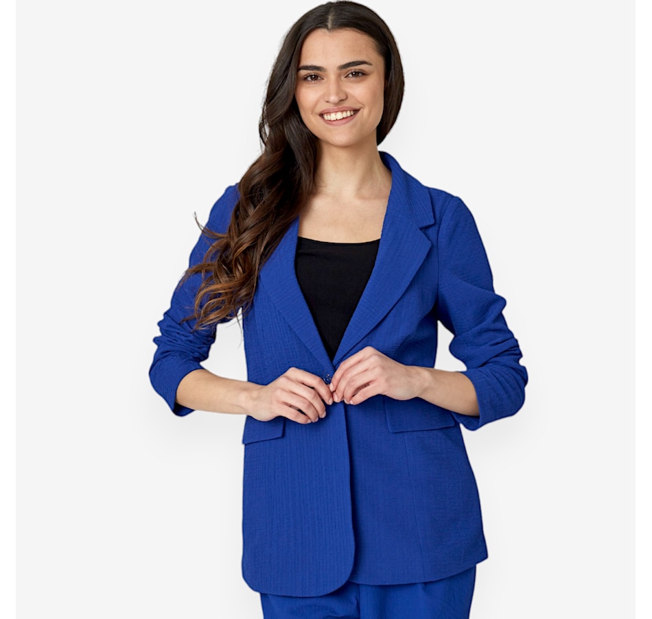 Available in a range of fabulous colours, you'll finish every look in dynamic style wearing this gorgeous button front puckered jacket from Nina Leonard.