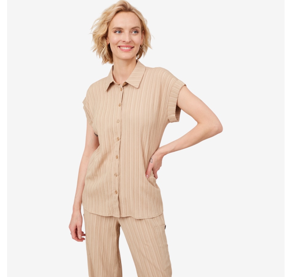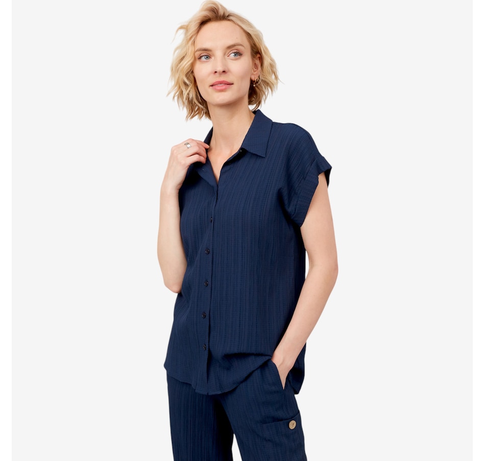 Versatile and classic, you'll centre your look in universal style with this collared button up top from Nina Leonard.