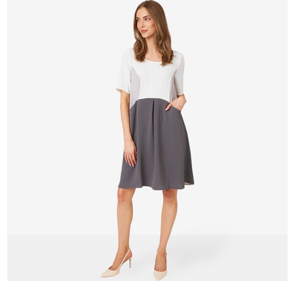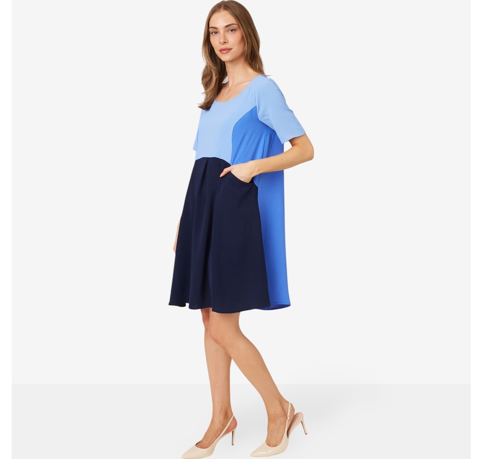 Available in a trio of great colours, you'll elevate every look in style wearing this colourblocked textured wave dress from Nina Leonard.