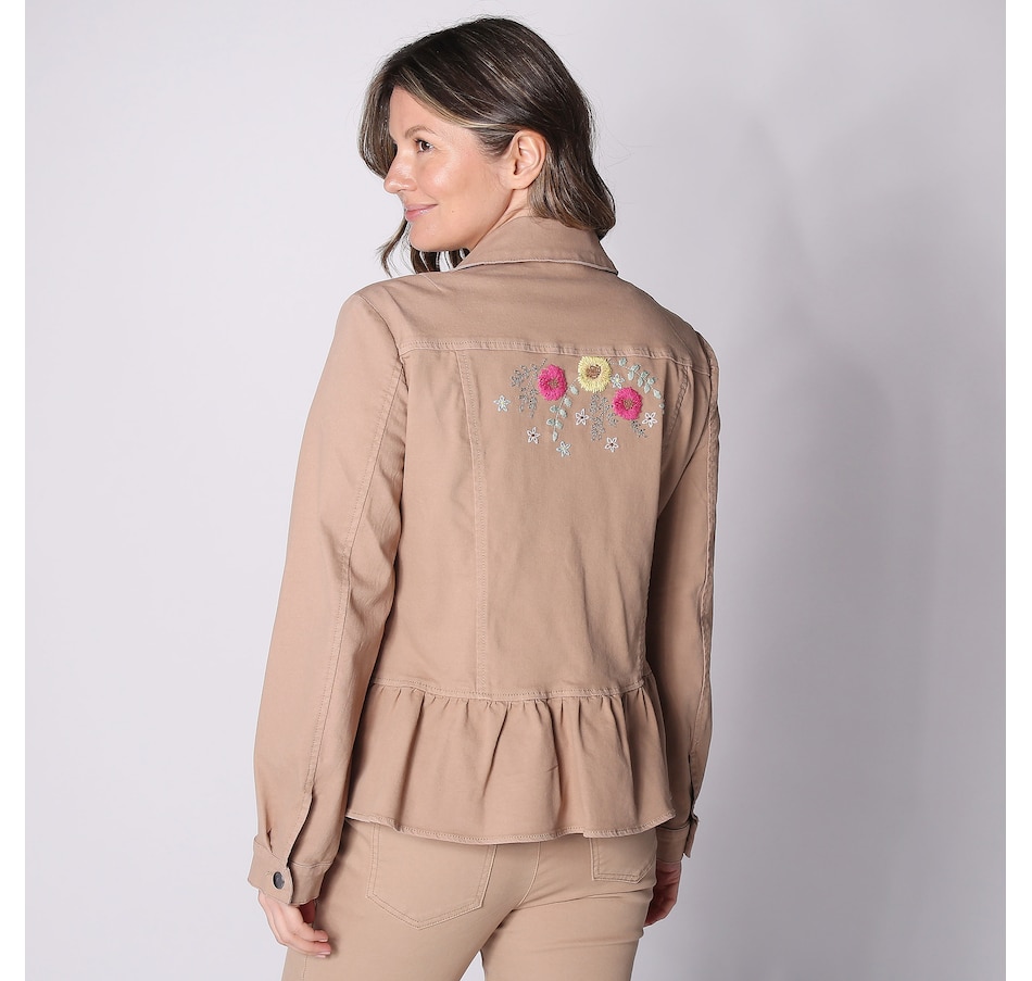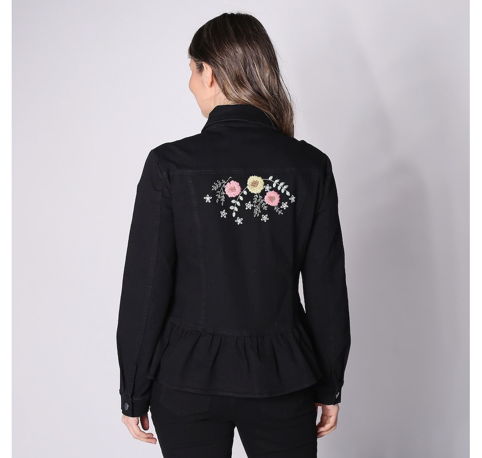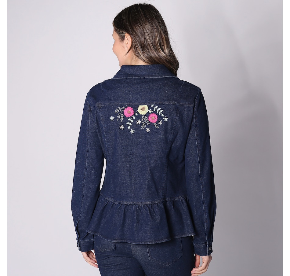 Finish your look in fabulous, standout style with this denim twill embroidery from Nina Leonard.