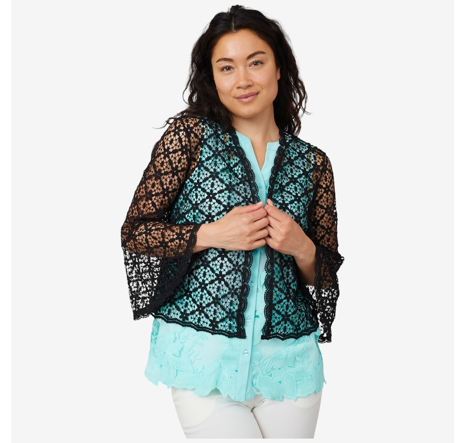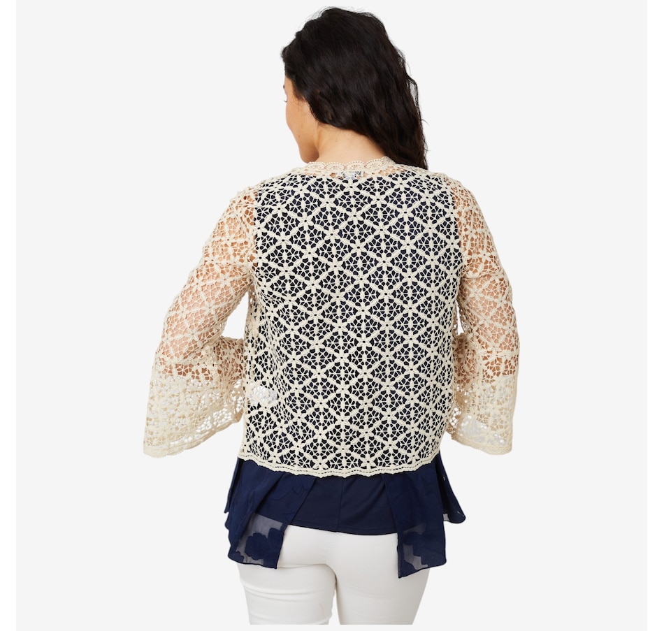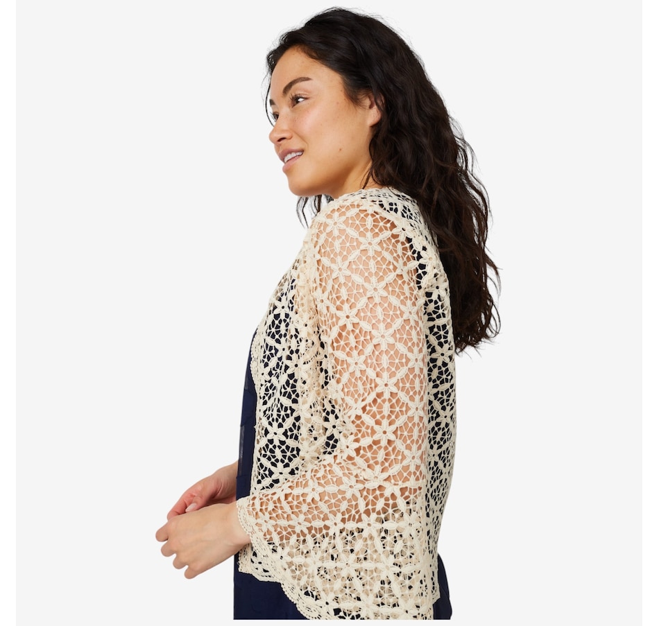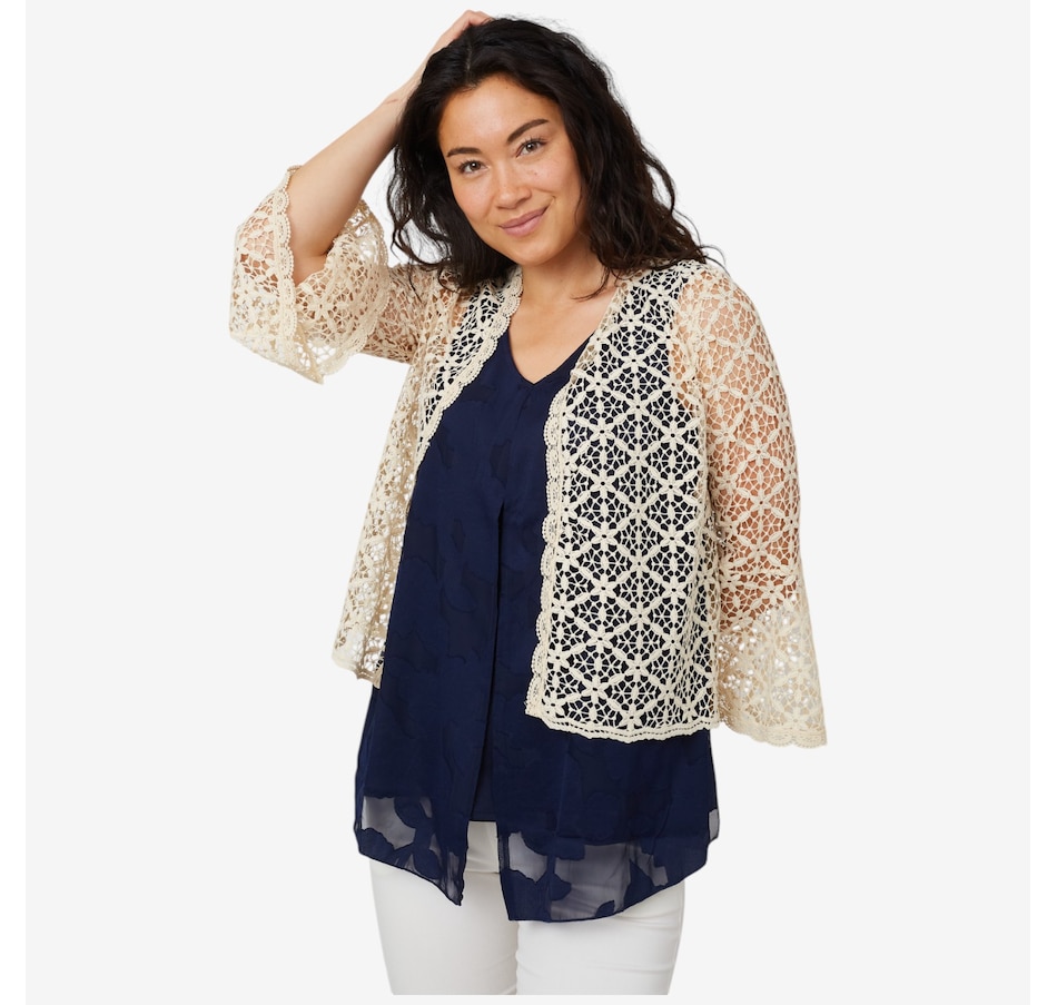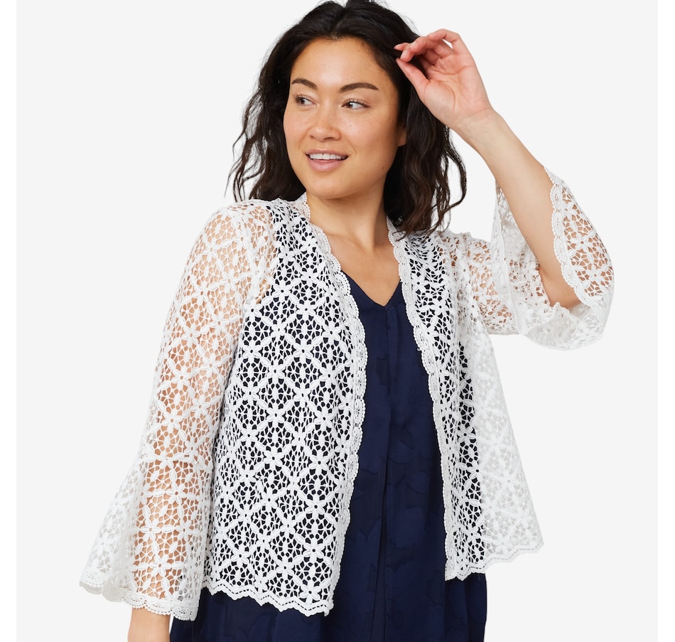 You'll centre all your summer looks in sophisticated style with this beautiful floral crochet cardigan from Nina Leonard.