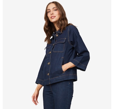 • Fitted, pockets, flutter sleeves, v-neck, pull-on