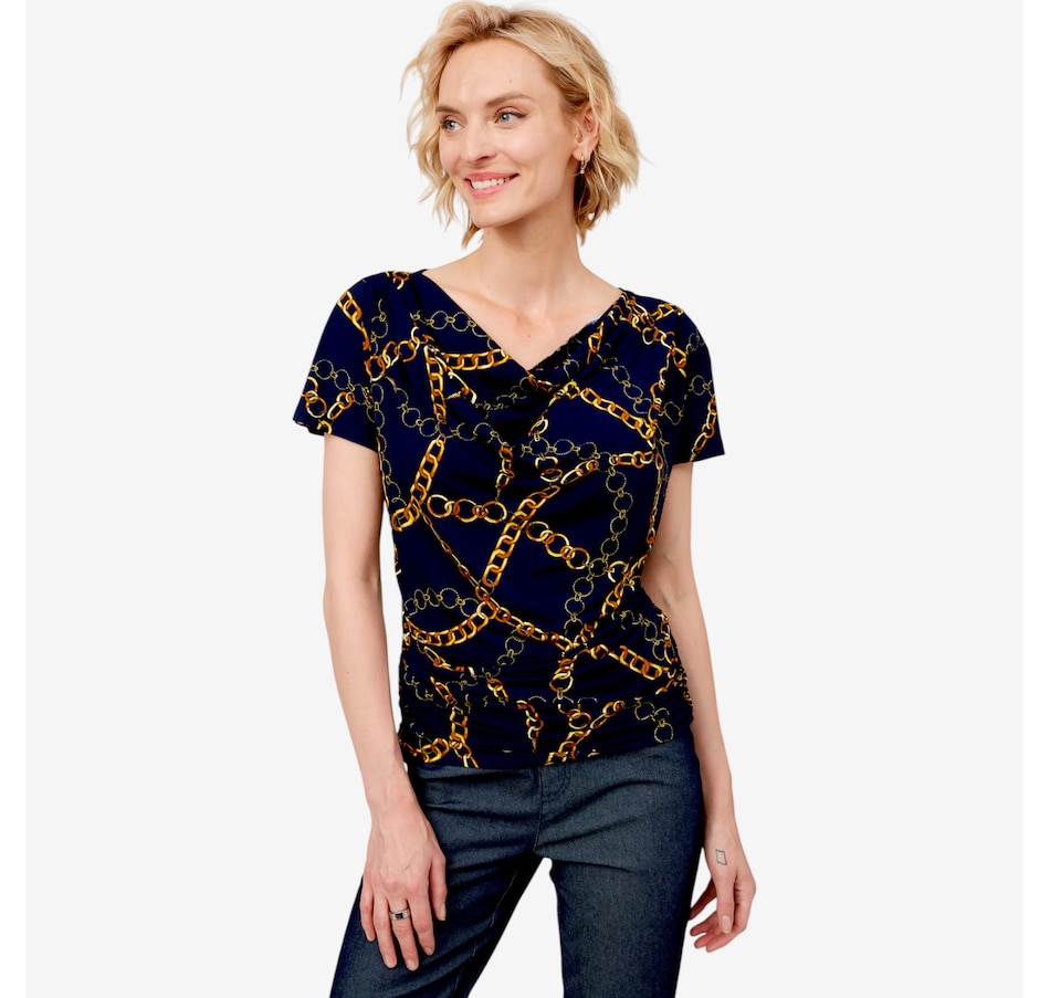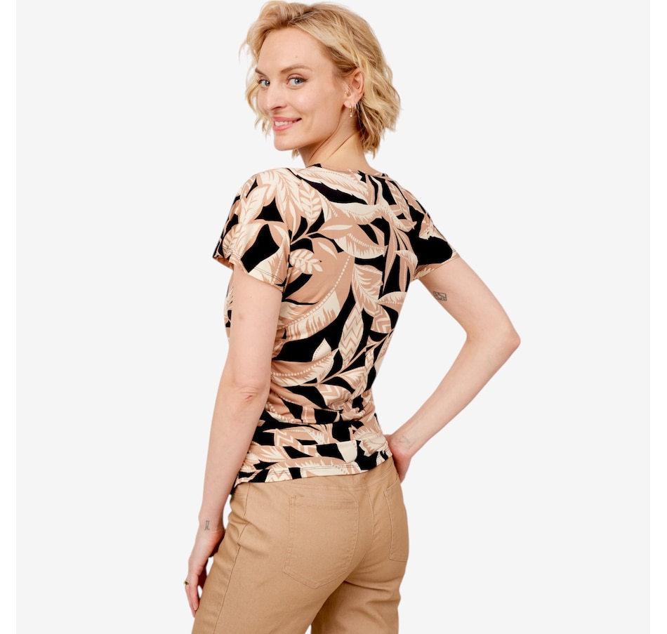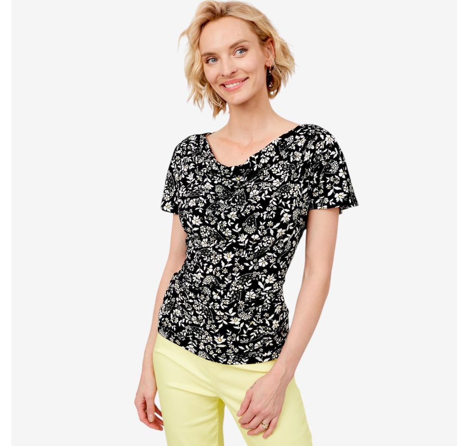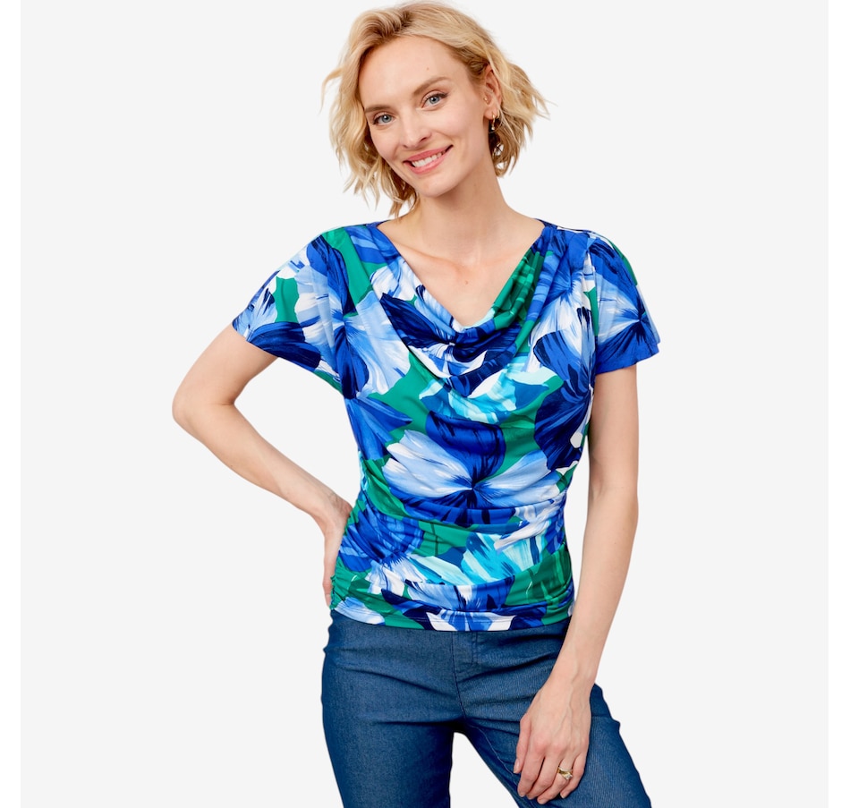 Bright and seasonal, you'll centre your summer look in style with this hi low printed pleat top from Nina Leonard.