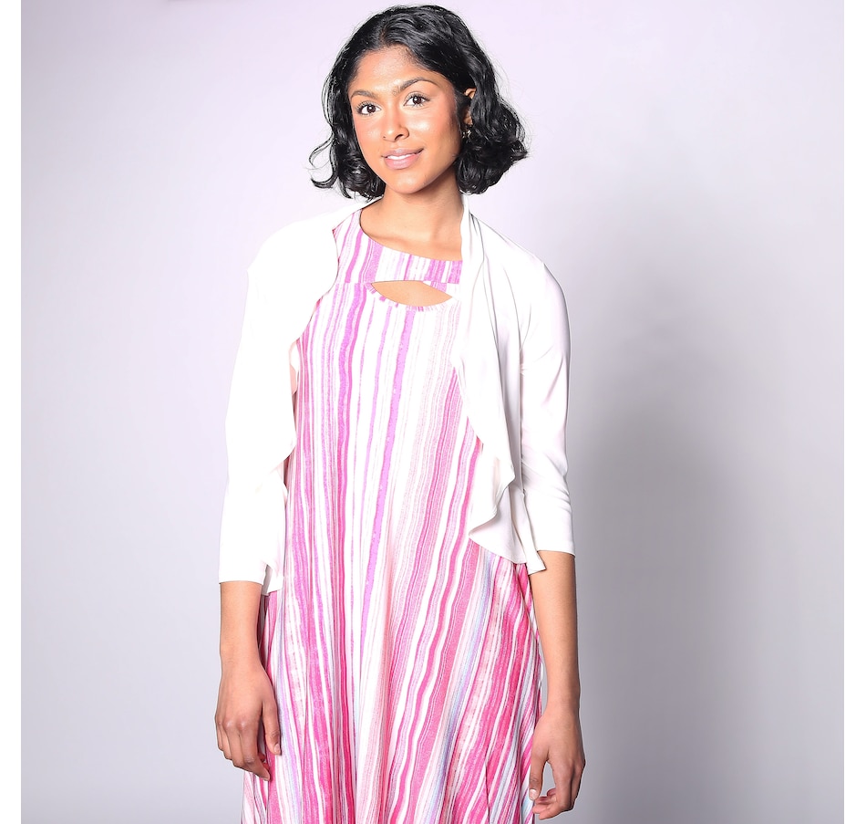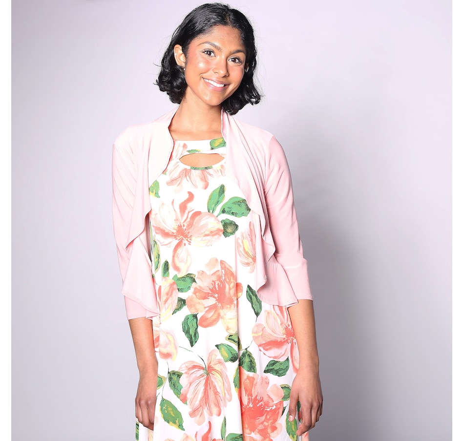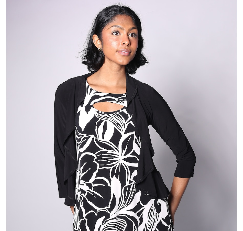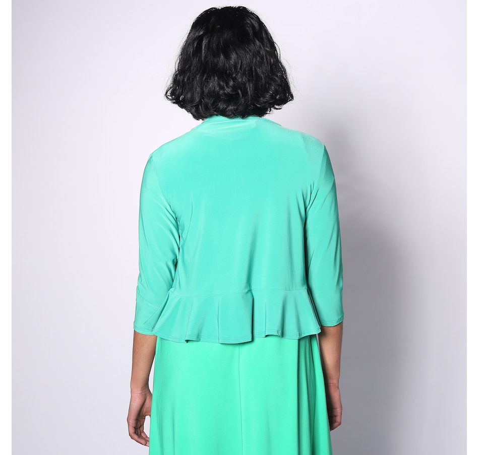 Available in a sweeping range of colours, you'll finish every look in smart style with this ITY ruffle front bolero from Nina Leonard.