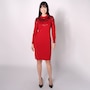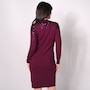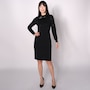 Finish your look in defined style with this beautiful neck knit sweater dress from Nina Leonard.