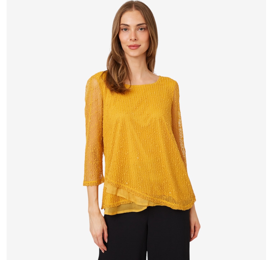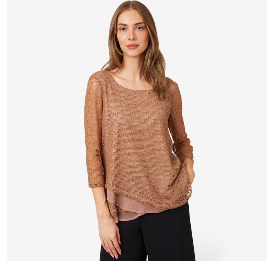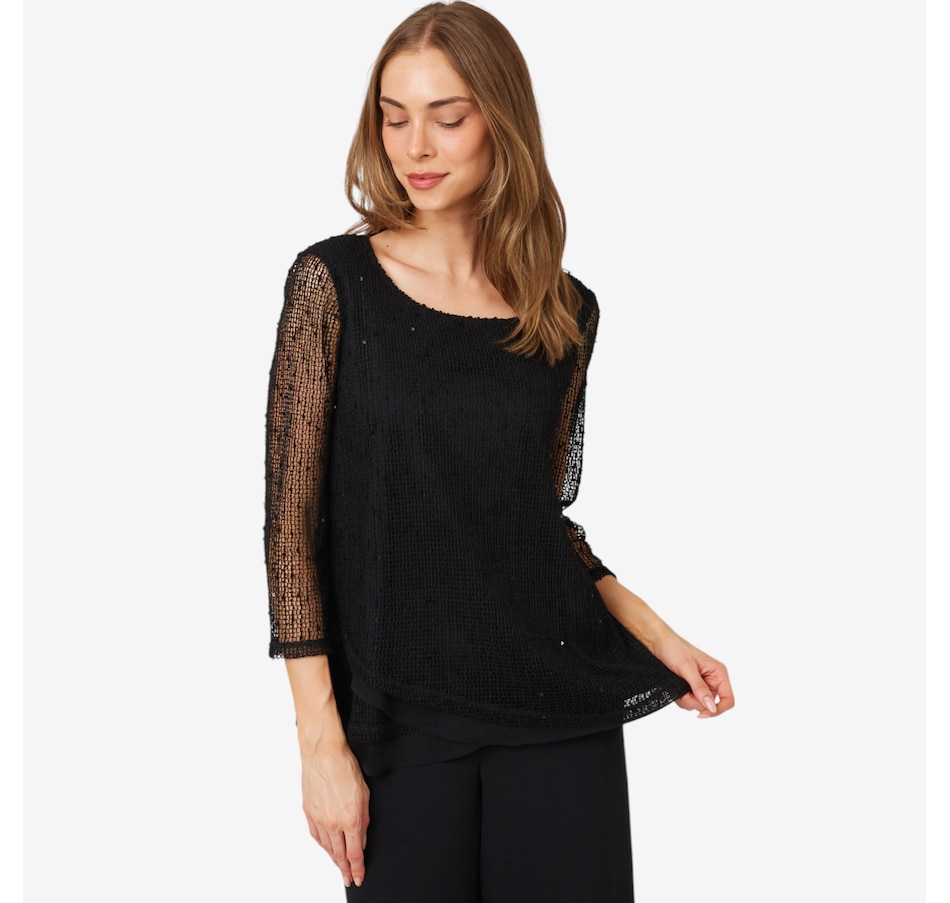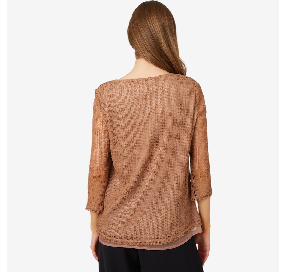 Available in an extensive range of great colours, you'll centre every look in defined style wearing this sequin open knit top from Nina Leonard.