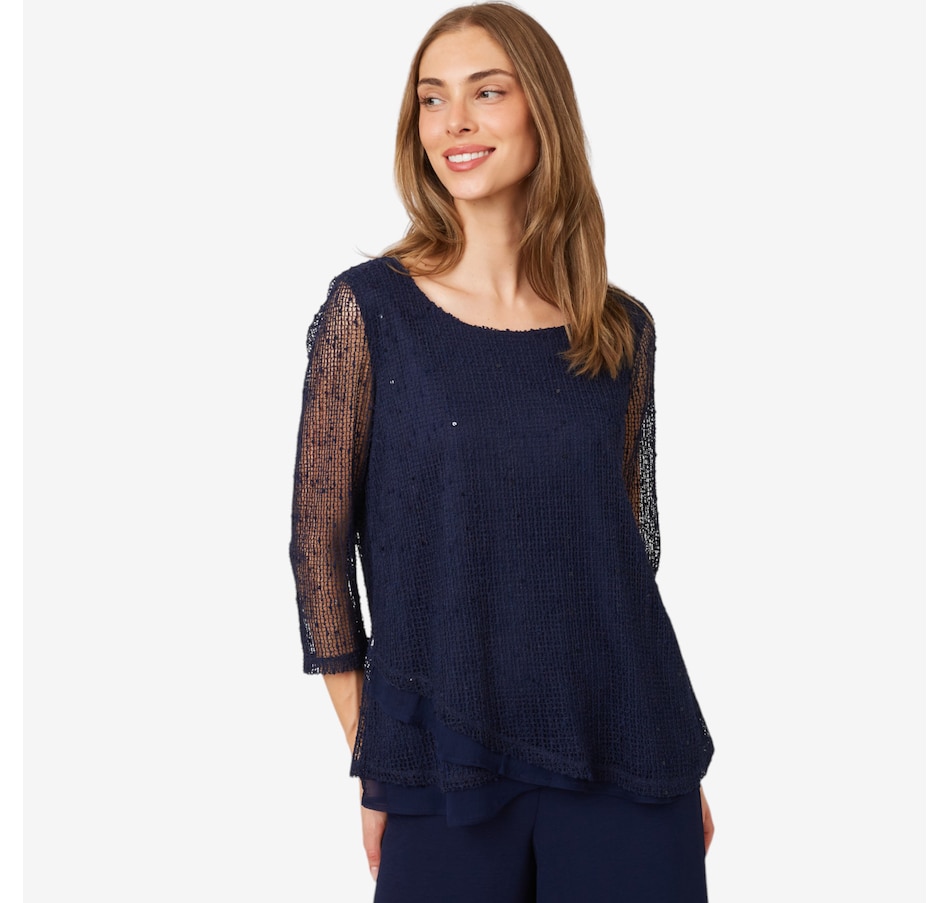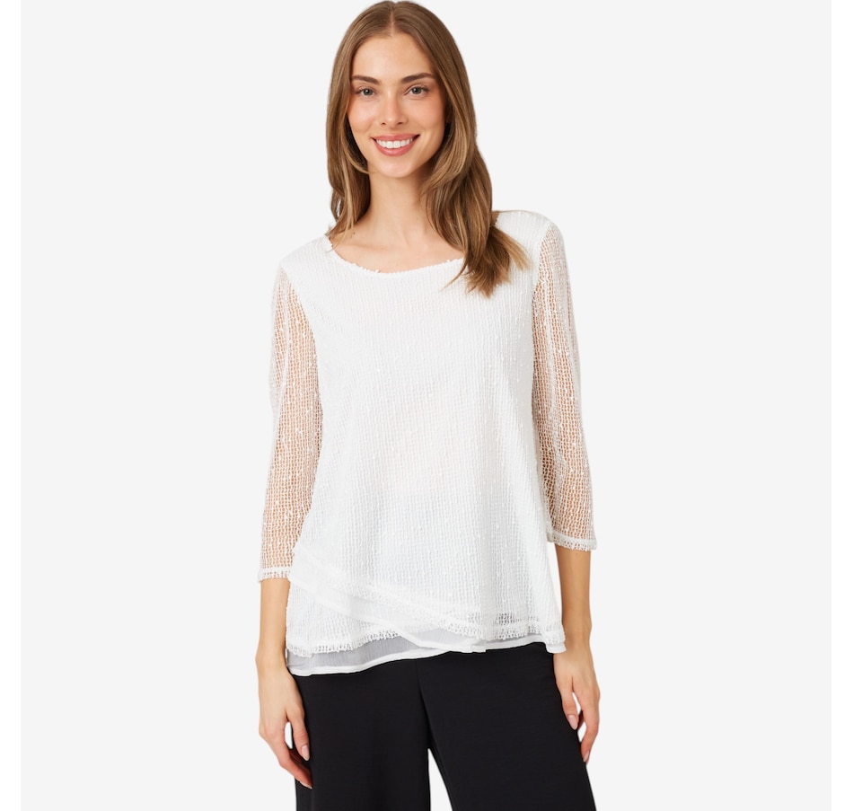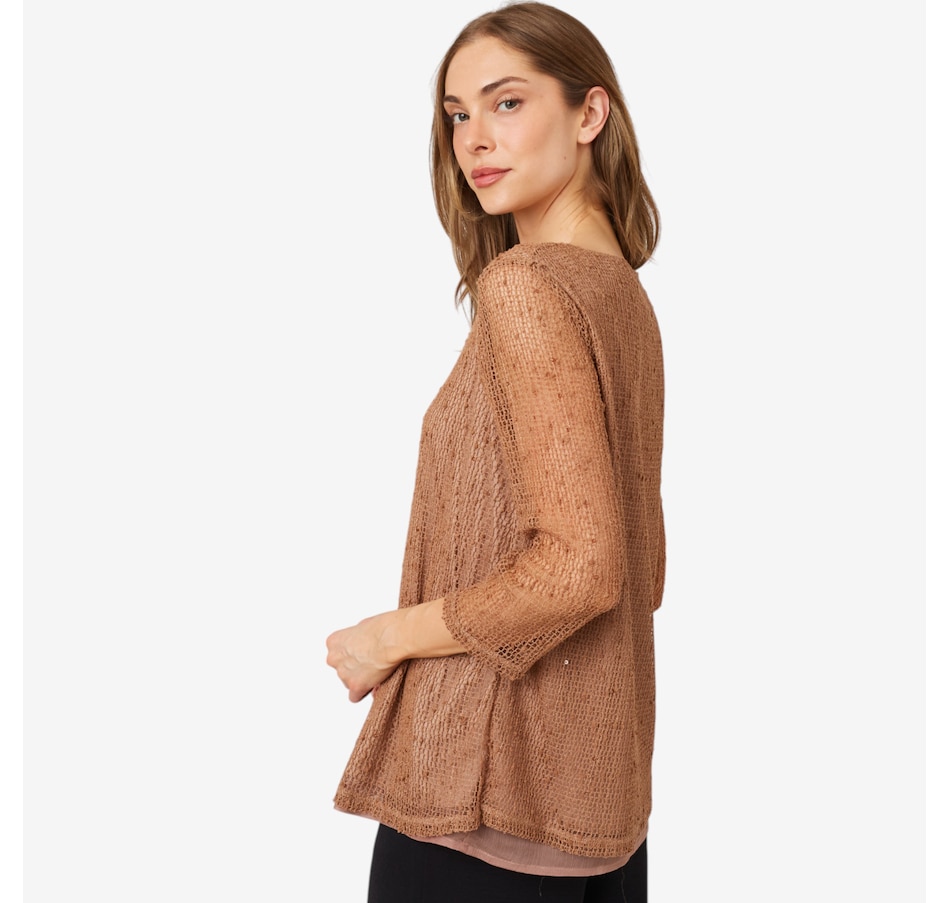 Novelty Sequin Open Knit Top with Tulip Hem