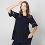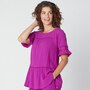 Add something beautiful and stylish to your wardrobe with this ruffle sleeve pebble tiered top from Nina Leonard.
