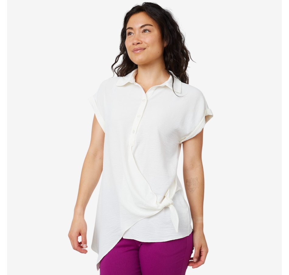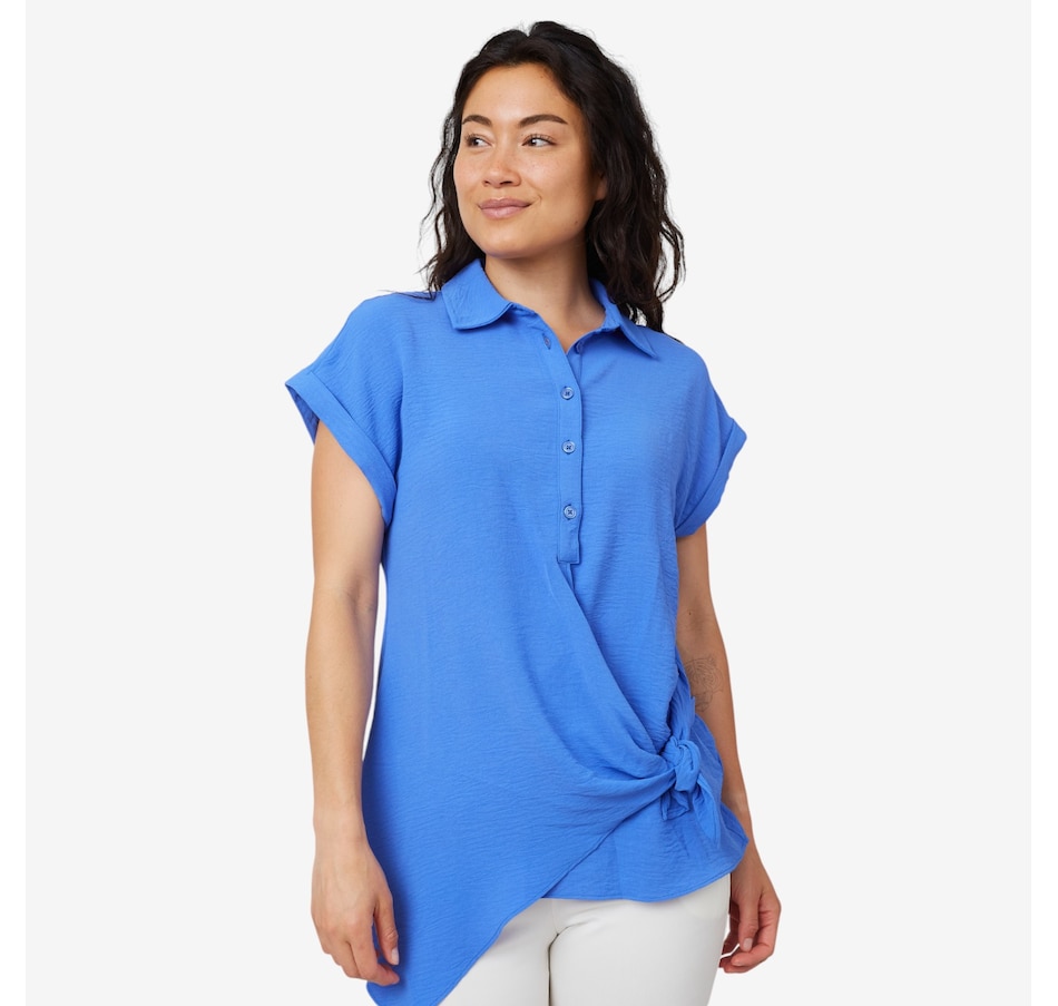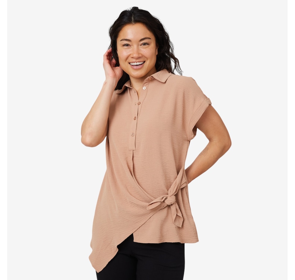 You'll centre all your summer looks in sophisticated style with this beautiful button front shirt from Nina Leonard.