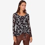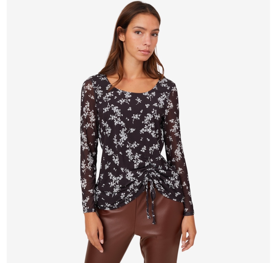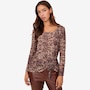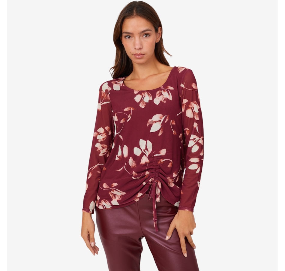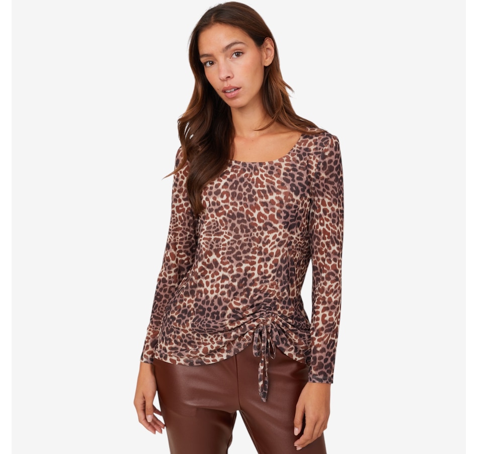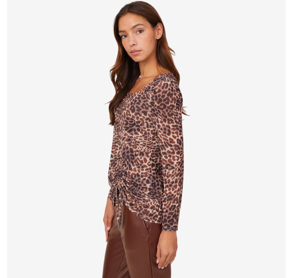 Centre your fall look in decidedly dazzling style whenever you wear this side pick up printed powermesh top from Nina Leonard.