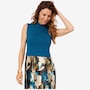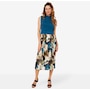 Sleeveless Mock Neck Midi Dress with Pleat Printed Skirt