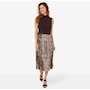 Add to your fall look in vibrant style whenever you wear this mock neck midi dress with pleat printed skirt from Nina Leonard.