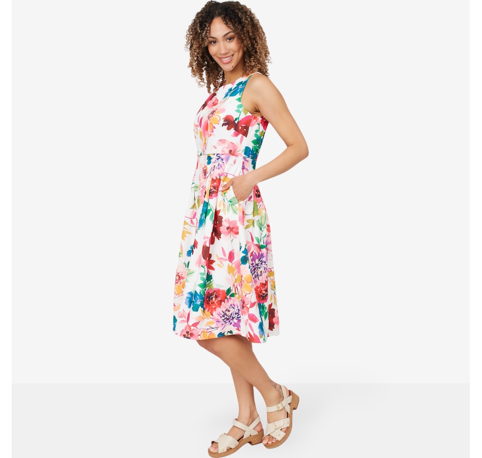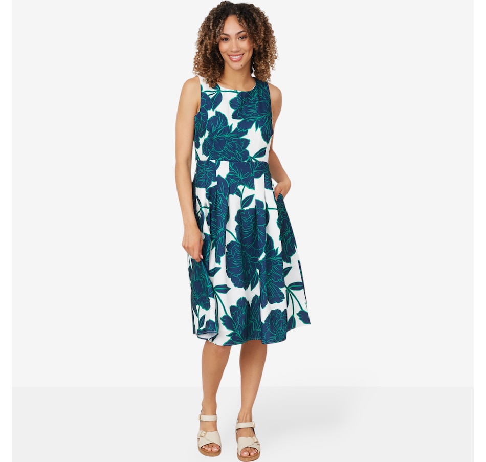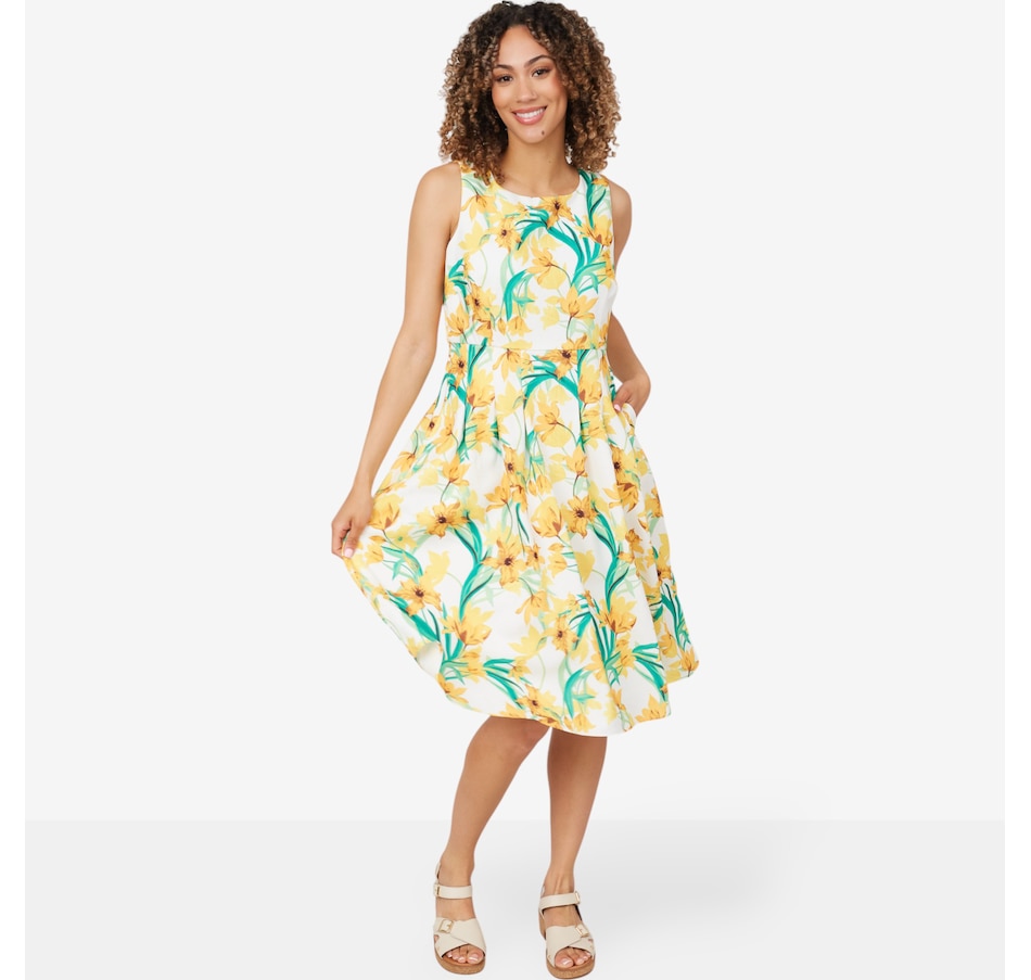 Feminine and colourful, you'll centre every look in undeniable style wearing this sleeveless stretch denim dress from Nina Leonard.