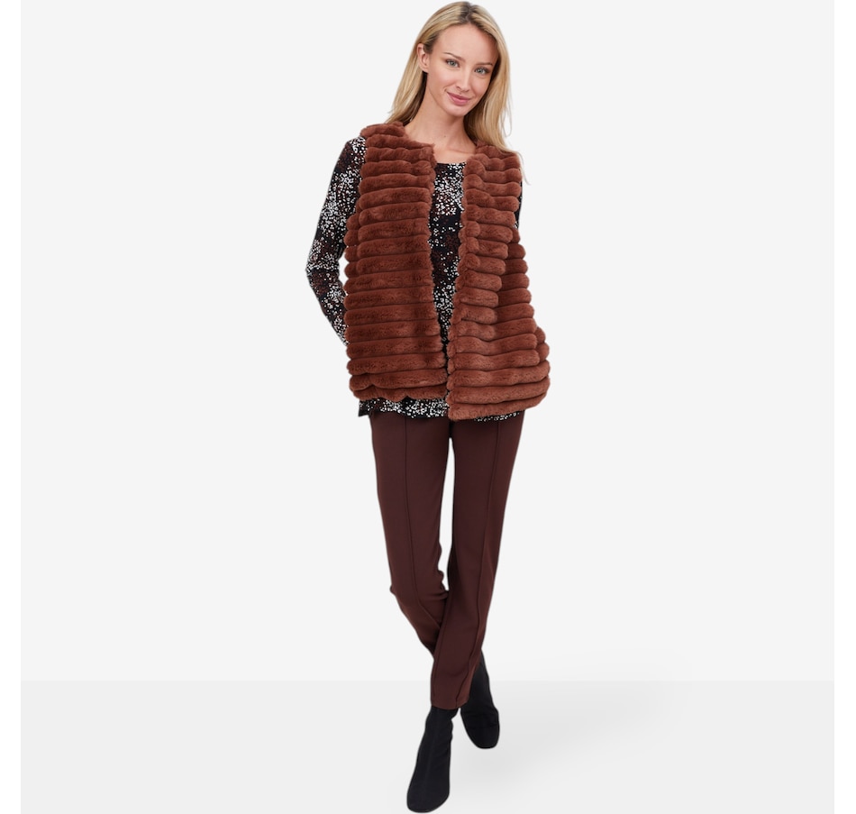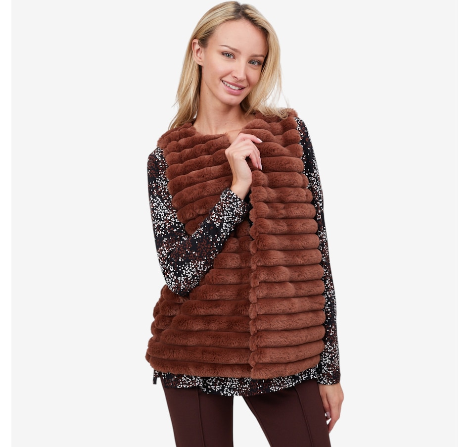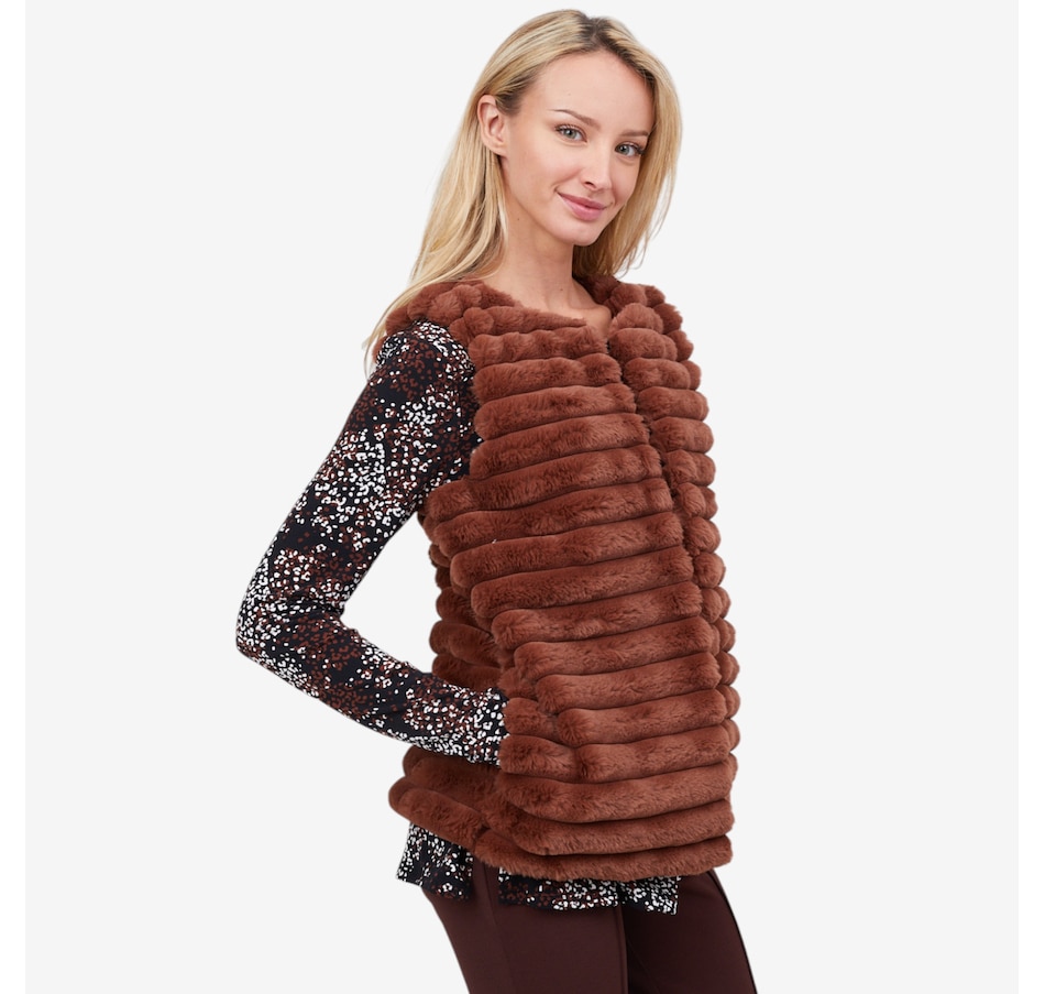 Centre your fall look in elevated style whenever you wear this exciting faux fur vest from Nina Leonard.
