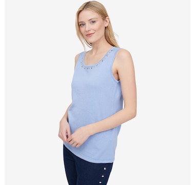 Polished comfort meets modern edge with the Nina Leonard stretch denim pant with stud detailing. Designed with a sleek narrow‑leg silhouette, this flattering pull‑on style delivers effortless wear with a mid‑rise fit and a comfortable elastic waistband. Crafted from stretch denim, it offers a smooth, fitted look that moves with you while maintaining its shape all day long. Hip and back pockets add classic denim appeal, while subtle stud detailing elevates the design with just the right amount of attitude. Available in a selection of great colours, this versatile pant pairs seamlessly with everything from casual knits to dressier tops.