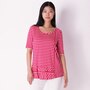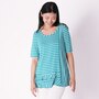 Add to your look in versatile, eye-catching style with this stripe jewel neck shirt from Nina Leonard.