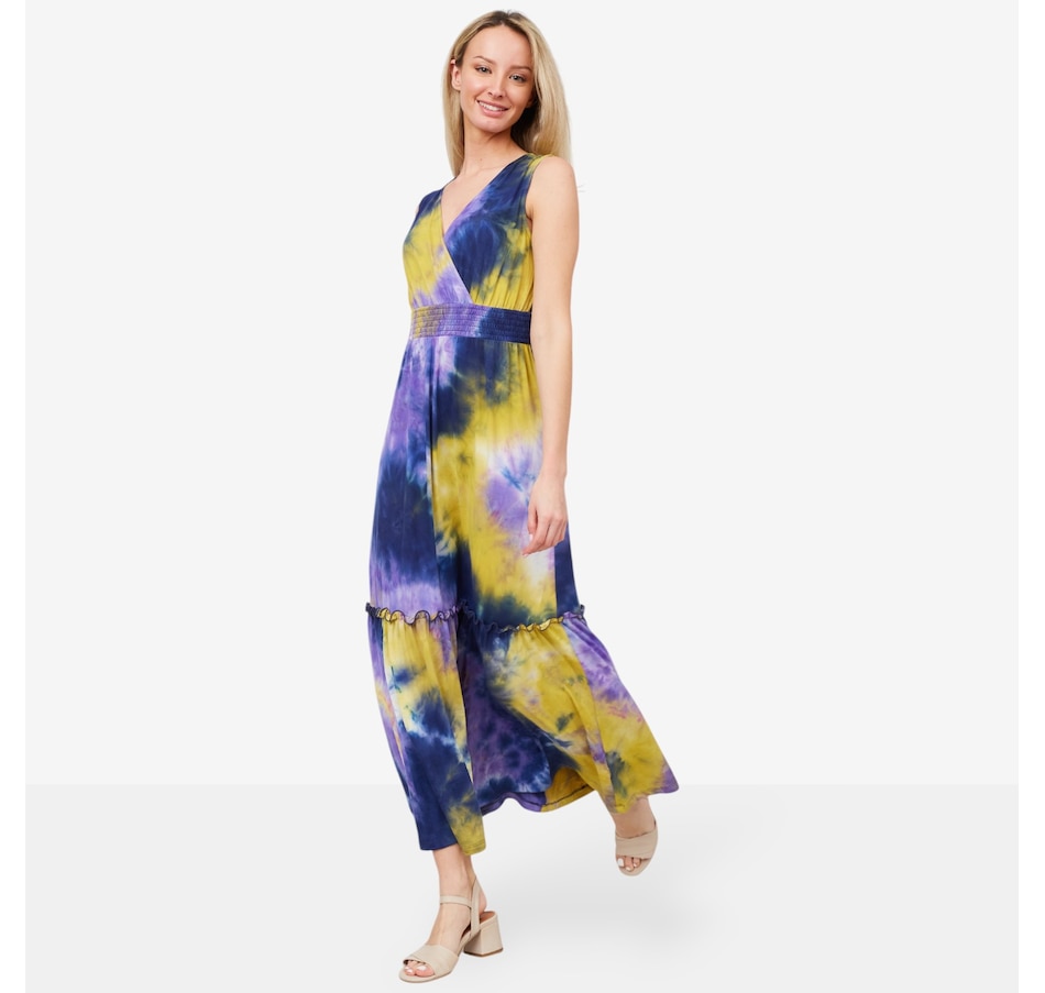 Vibrant and colourful, you'll centre every look in vintage style wearing this tie dye maxi dress from Nina Leonard.