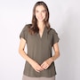 V-Neck Curved Hem Textured Wave Solid Top with Tulip Short Sleeves