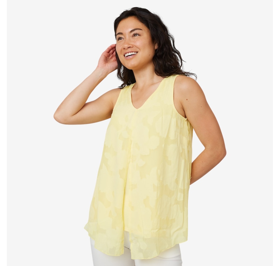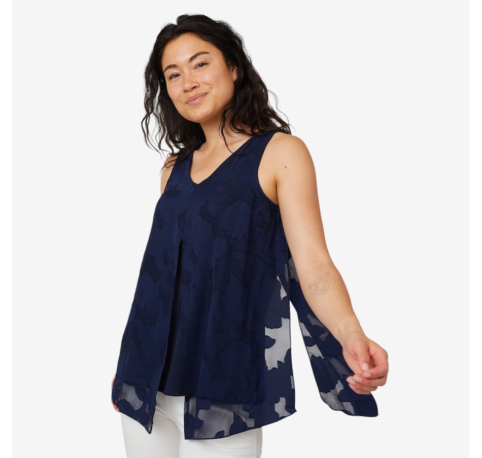 You'll centre all your looks in sophisticated style with this beautiful flyaway chiffon jacquard top from Nina Leonard.