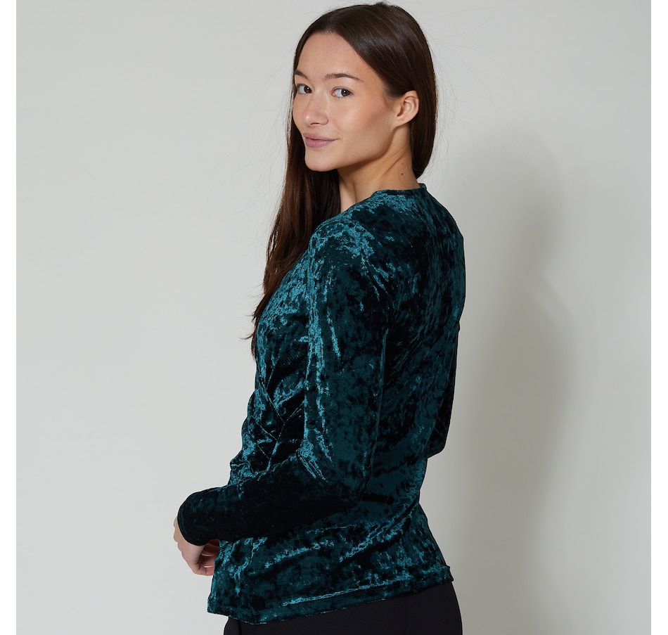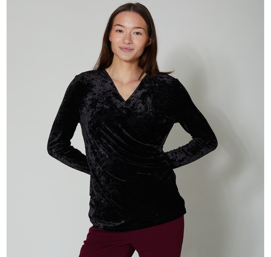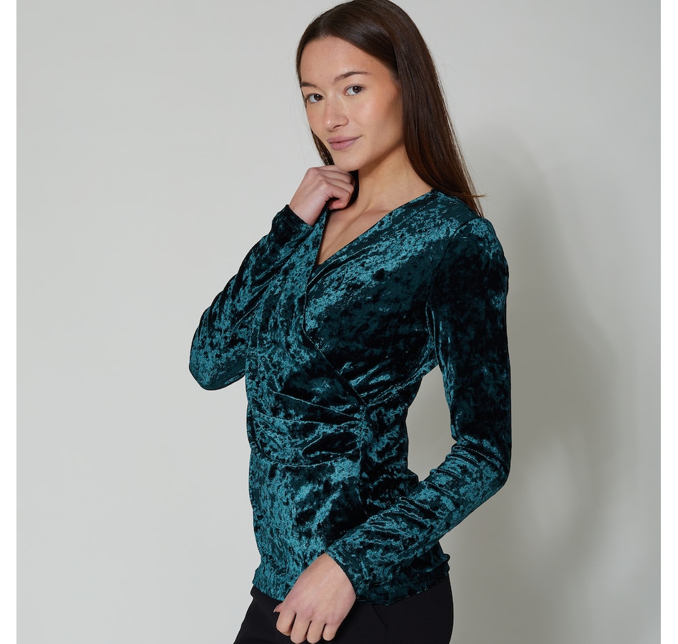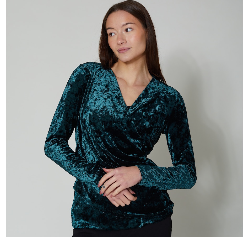 Available in a choice of beautiful colours, you'll centre every look in fabulous style with this stunning crushed velvet top from Nina Leonard.